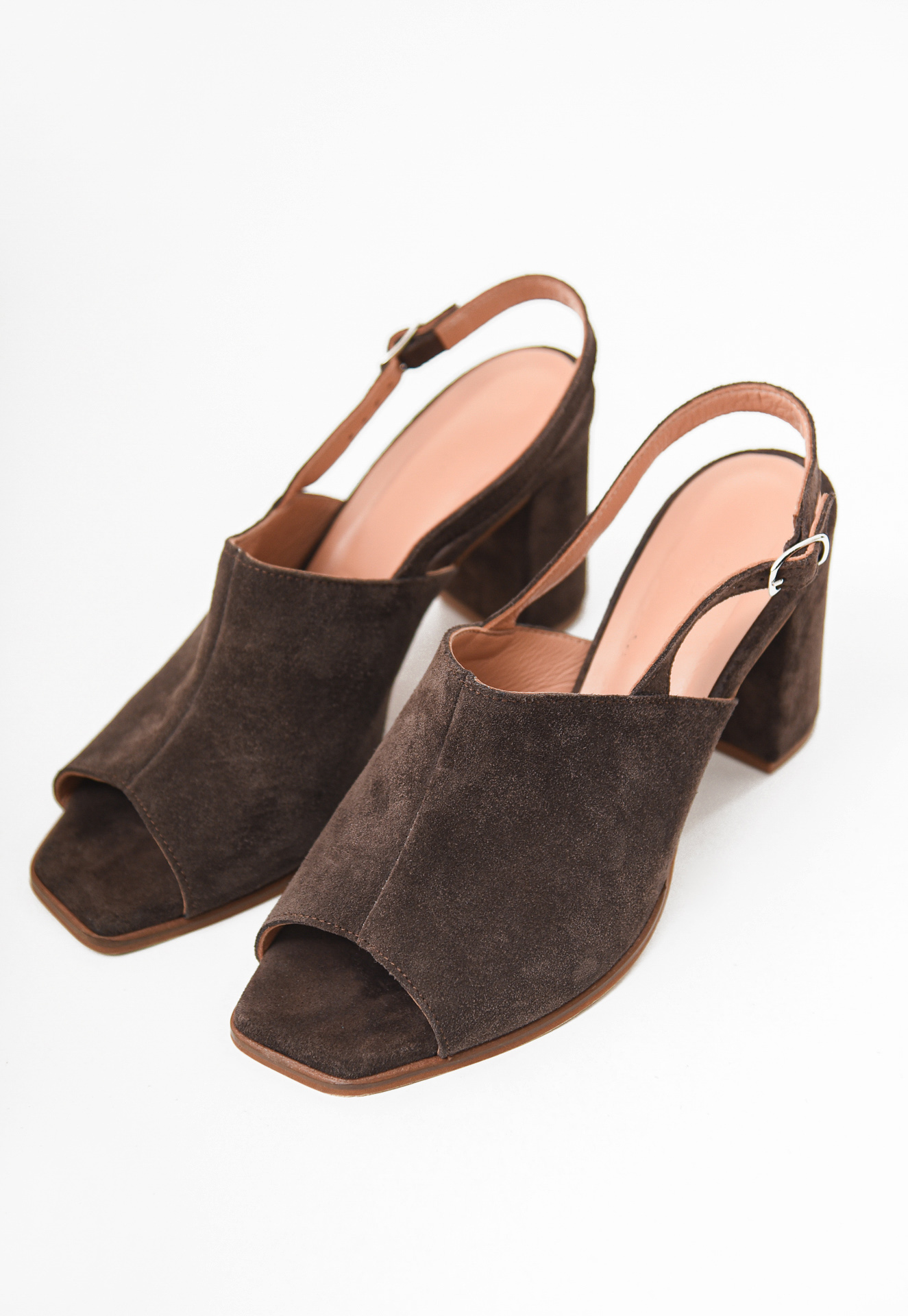 Crafted from soft suede, they feature a chunky heel, square open toe, and slim adjustable strap for a perfect fit.