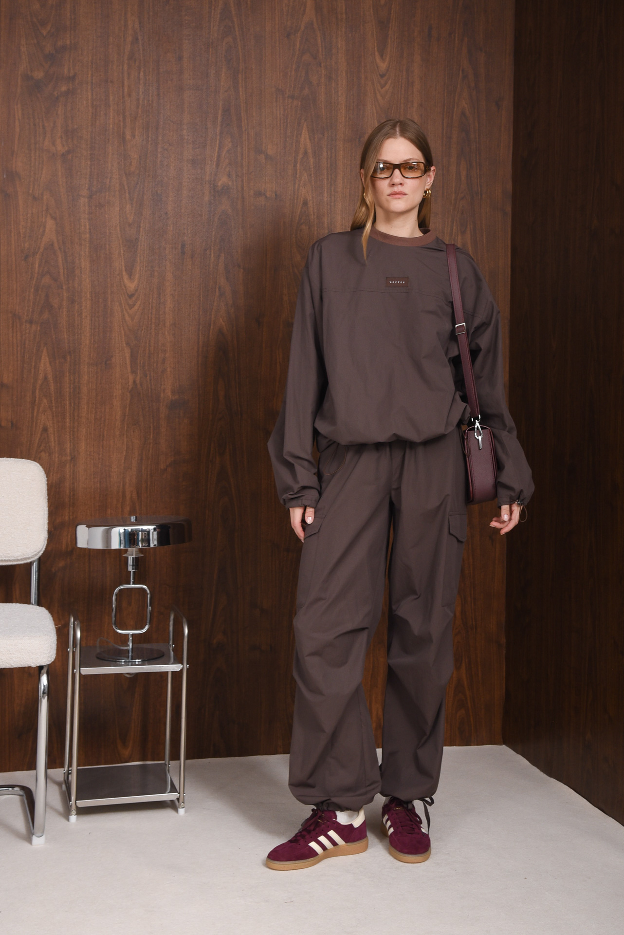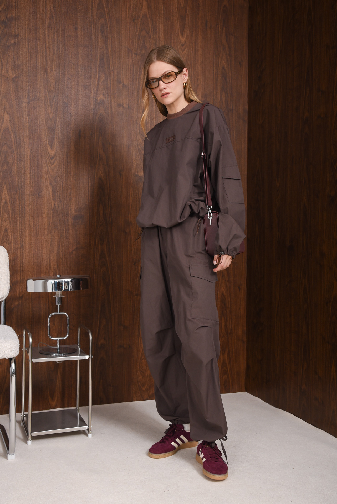 The Anxiety pants have a relaxed, wide-leg shape with an elastic waistband and drawstring for an adjustable fit. Made from lightweight, structured cotton-blend fabric for everyday comfort. Designed with large flap pockets on the sides and back, and adjustable drawstrings at the ankles for a flexible, utilitarian look.