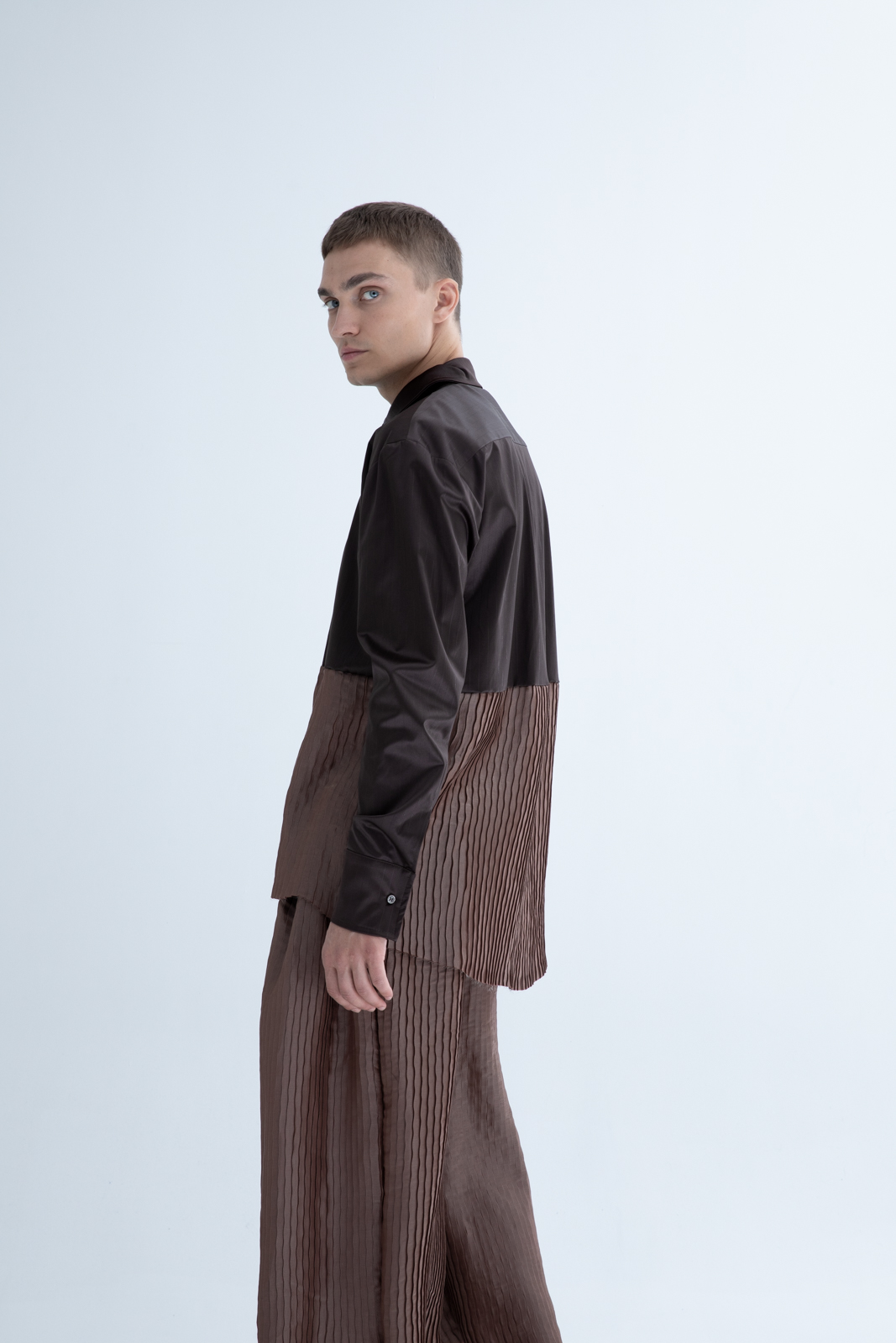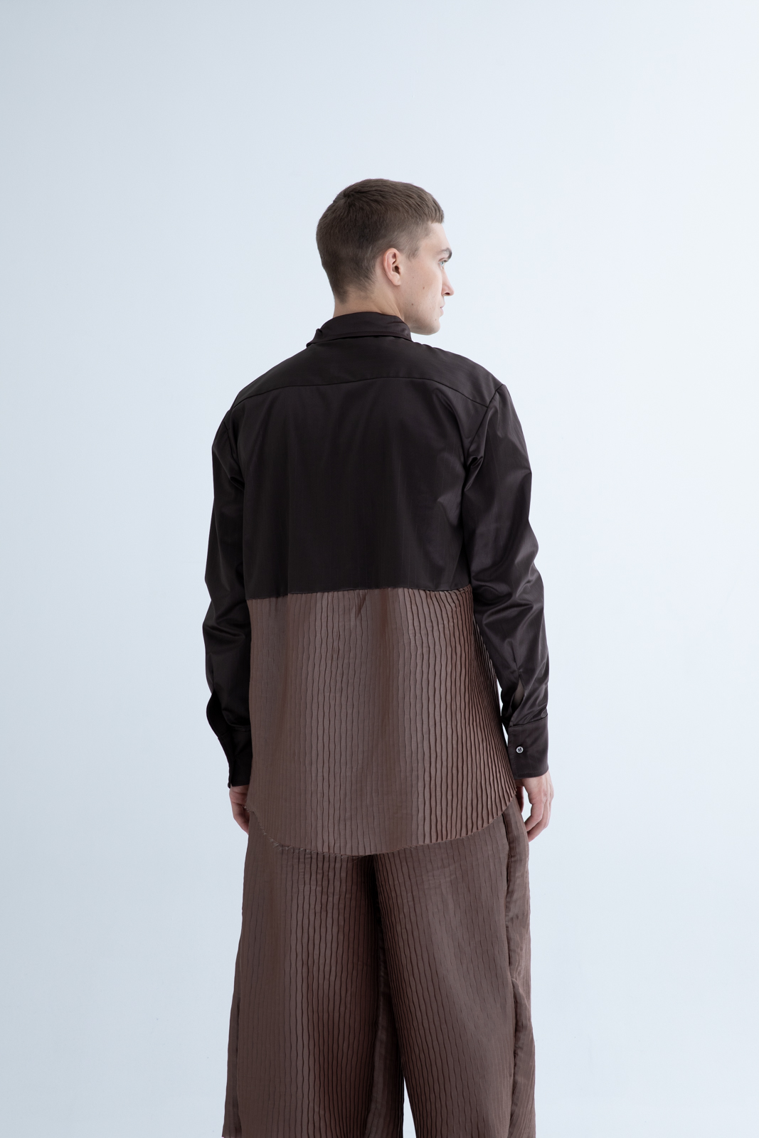 - Apros Shirt Charcoal – your ultimate choice for timeless elegance and sophistication. Crafted with meticulous attention to detail, this shirt is designed to make a lasting impression. Made from luxurious, shiny fabrics complemented by intricate pleated detailing, this shirt not only looks exquisite but also feels incredibly smooth against your skin. Its button front closure and classic collar exude a sense of traditional charm.Pair this versatile shirt with matching Apros pants for a cohesive and polished ensemble that’s ideal for formal occasions.