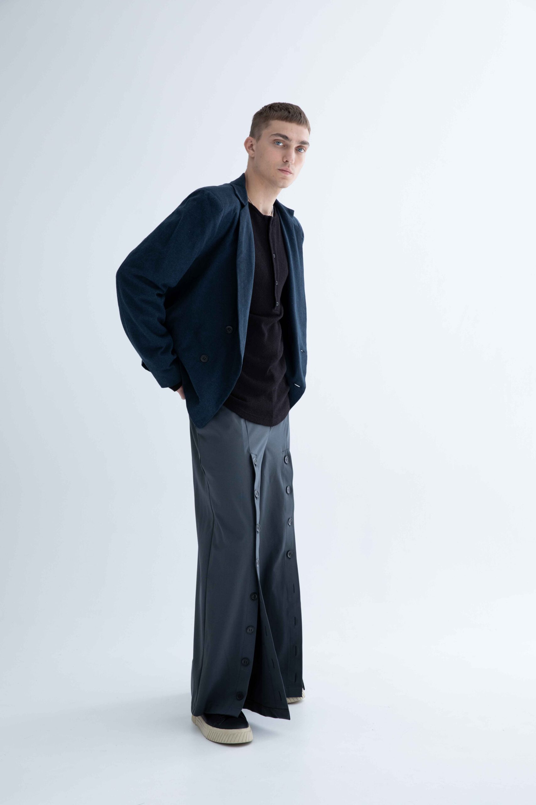 • Model measurements: chest 100 cm, waist 82 cm, height 187 cm.