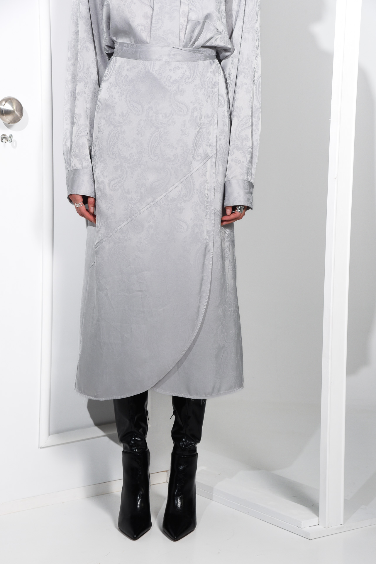 • Σας παρουσιάζουμε τη φούστα Ramble Wrap, κατασκευασμένη από απαλό, σατέν ύφασμα με υφή paisley που προσθέτει μια αίσθηση κίνησης στη συνολική εμφάνιση. Σχεδιασμένη για χαλαρή εφαρμογή, αυτή η ανάλαφρη και άνετη φούστα σας εξασφαλίζει άνεση όλη την ημέρα. Το ευέλικτο στυλ της, σας επιτρέπει να τη συνδυάσετε χωρίς κόπο με το ασορτί πουκάμισο.