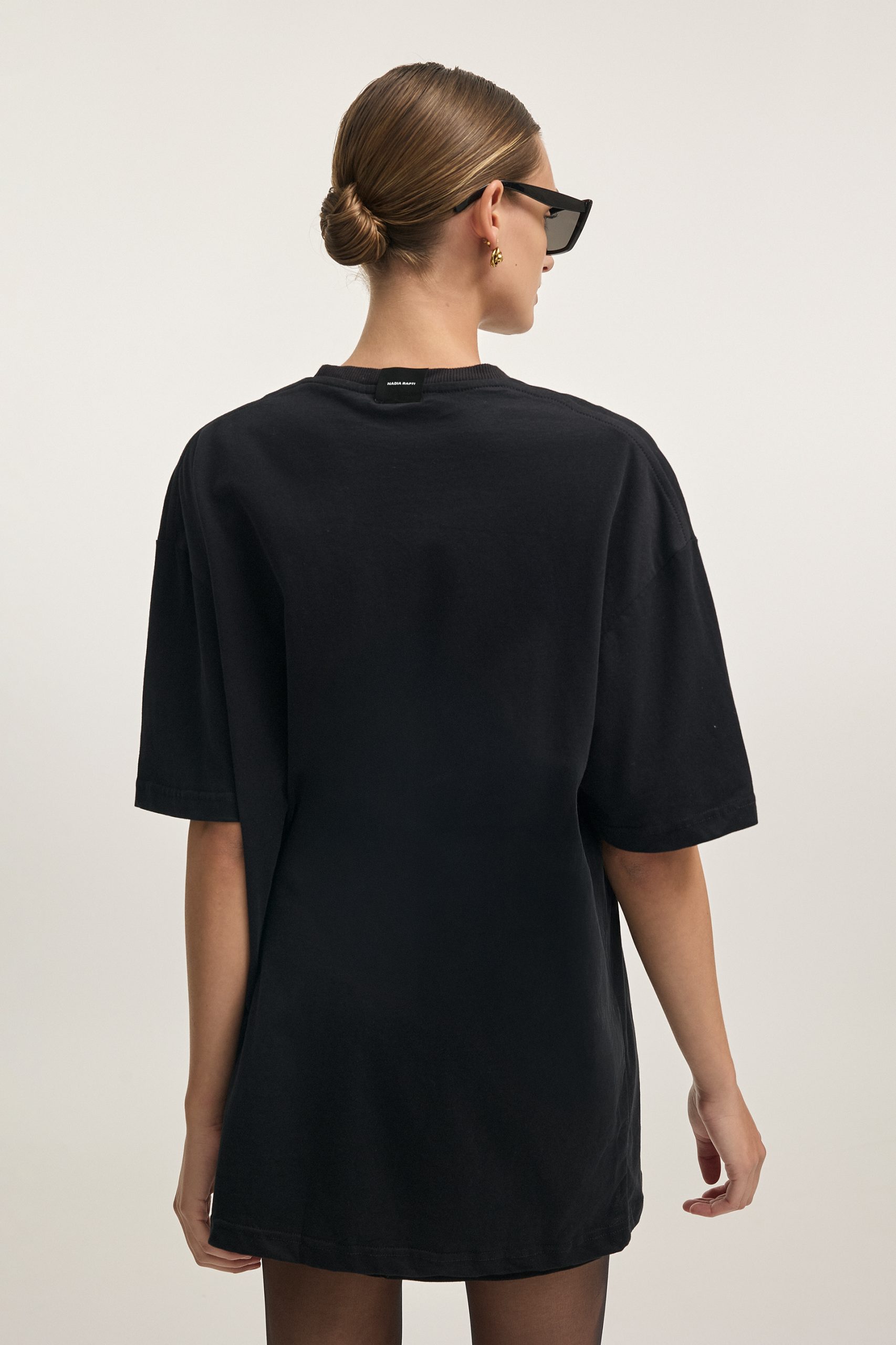 Relaxed oversized T-shirt crafted from soft, premium cotton for a smooth and breathable feel. Features a minimal design with signature embroidered details and a classic crew neckline. A timeless piece that combines effortless comfort with modern attitude perfect for layering or wearing on its own.