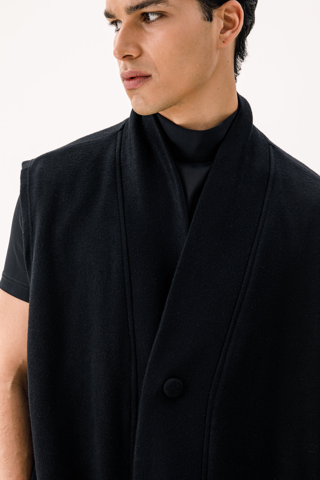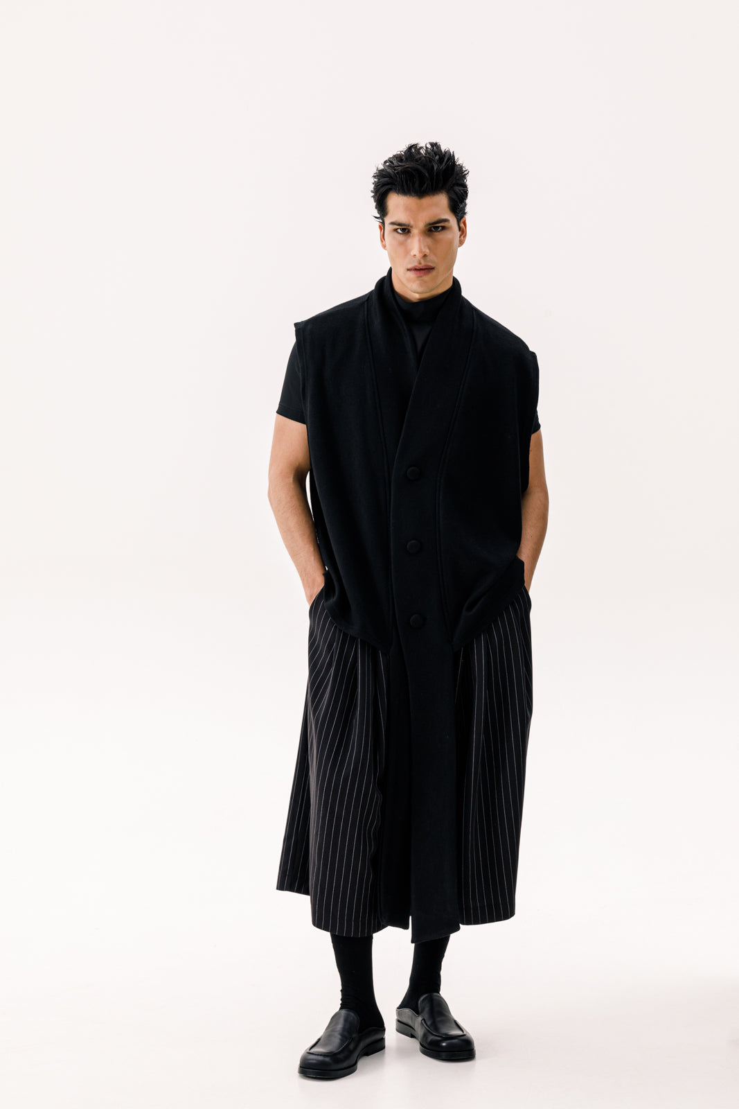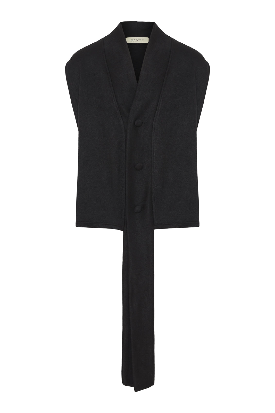 - The Canto Sleeveless Cardie combines elegance with a modern twist, featuring extra-long draped chips for a flowing, dramatic effect. Crafted from soft, premium fabric, this black cardigan adds effortless sophistication to any outfit, perfect for layering and creating a standout look.