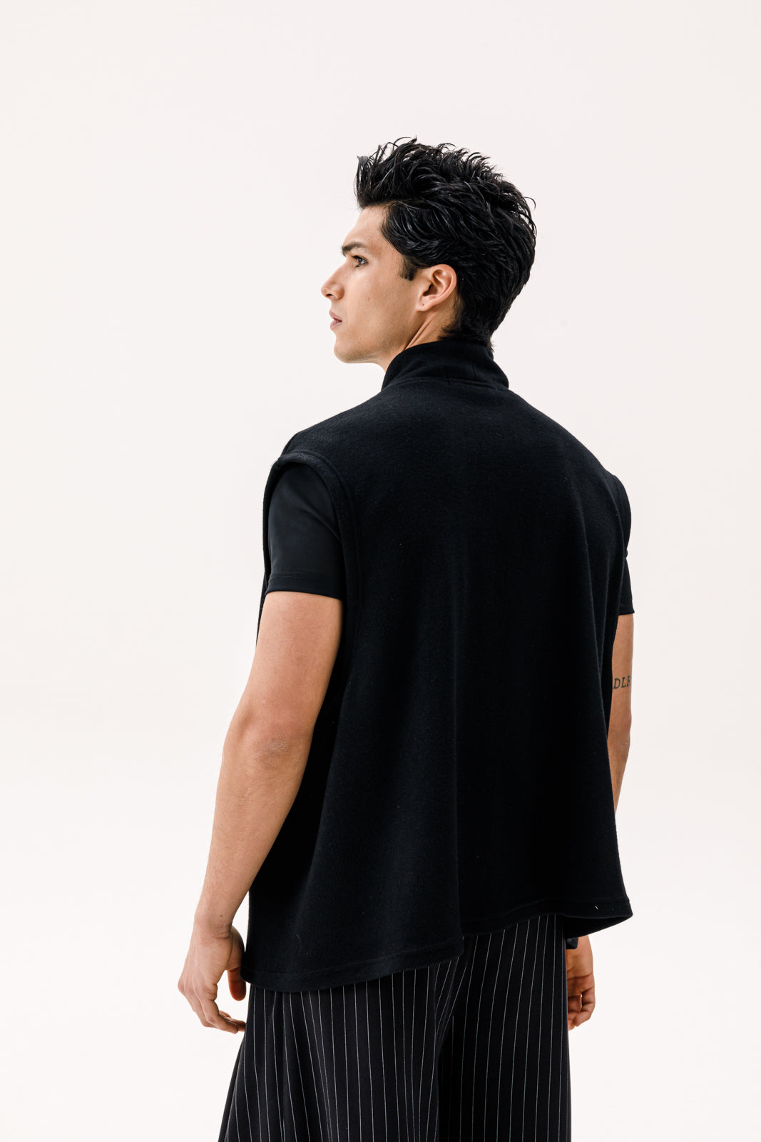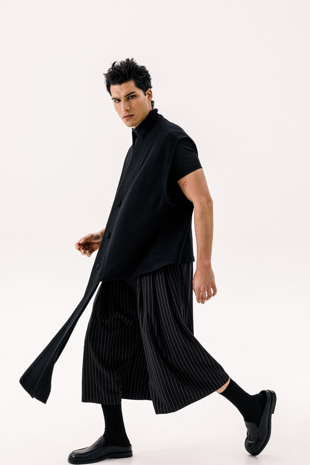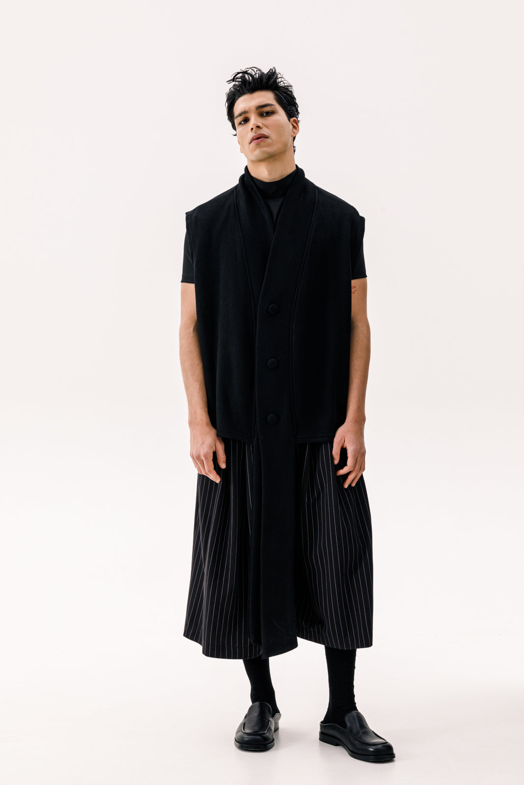 - The Canto Sleeveless Cardie combines elegance with a modern twist, featuring extra-long draped chips for a flowing, dramatic effect. Crafted from soft, premium fabric, this black cardigan adds effortless sophistication to any outfit, perfect for layering and creating a standout look.