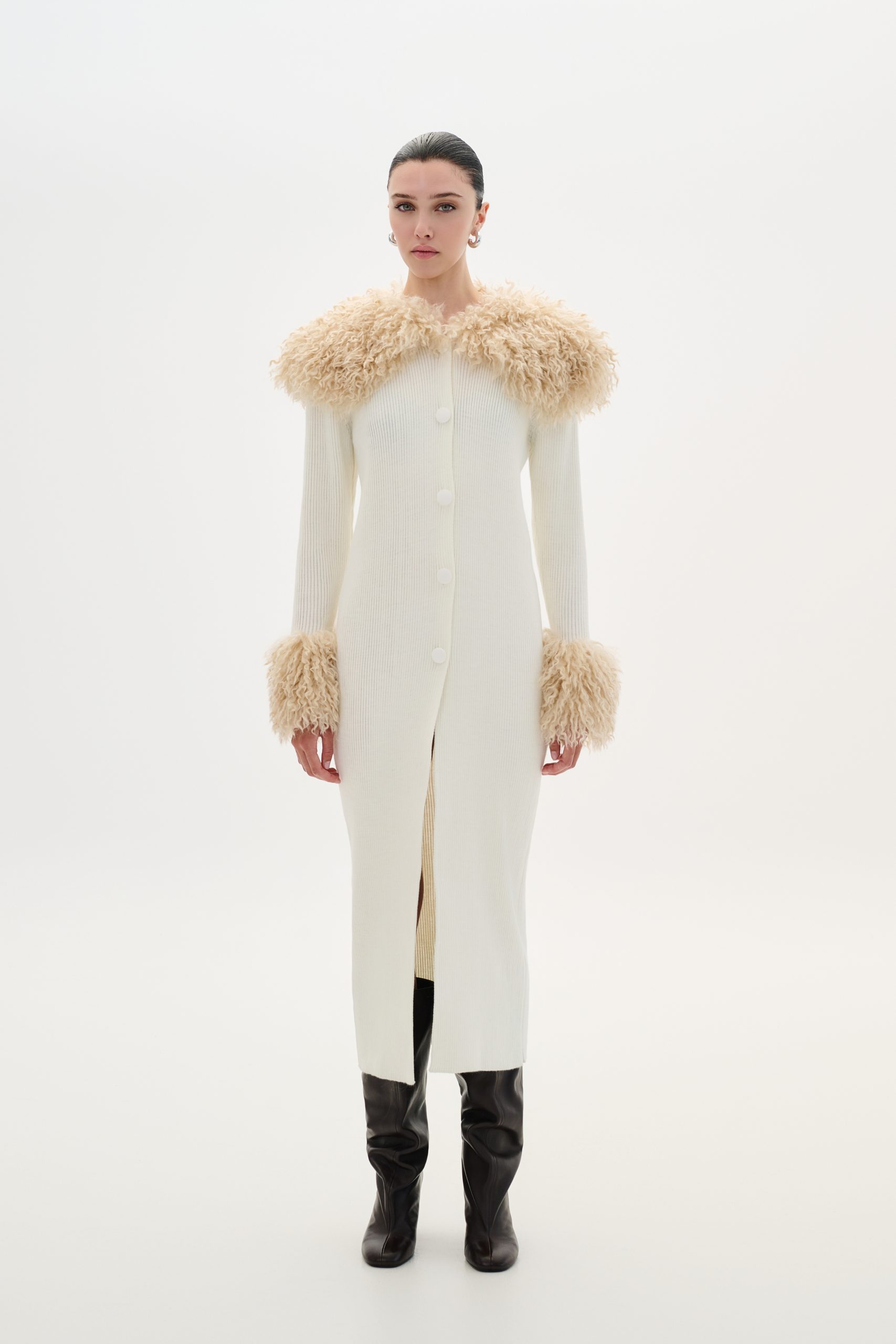 Cardigan V With Faux Fur