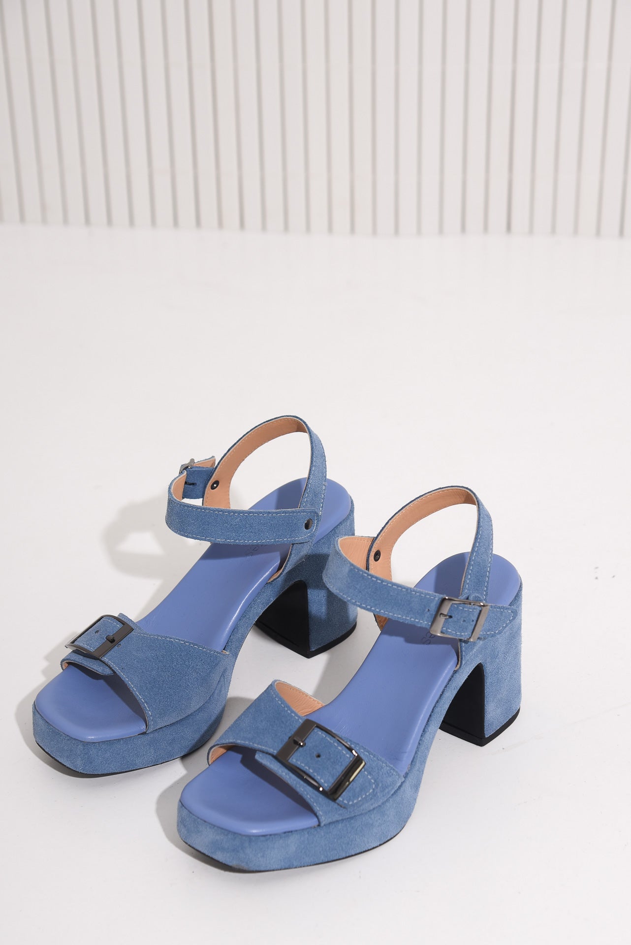 The Chikoo heels are crafted from soft suede with a chunky block heel and platform sole for added comfort. Featuring a square open toe, wide front strap and an adjustable ankle strap with metal buckle, they offer secure fit and effortless style. Finished with a smooth leather insole, they’re perfect for all-day wear in bold red, cool blue, or deep brown.