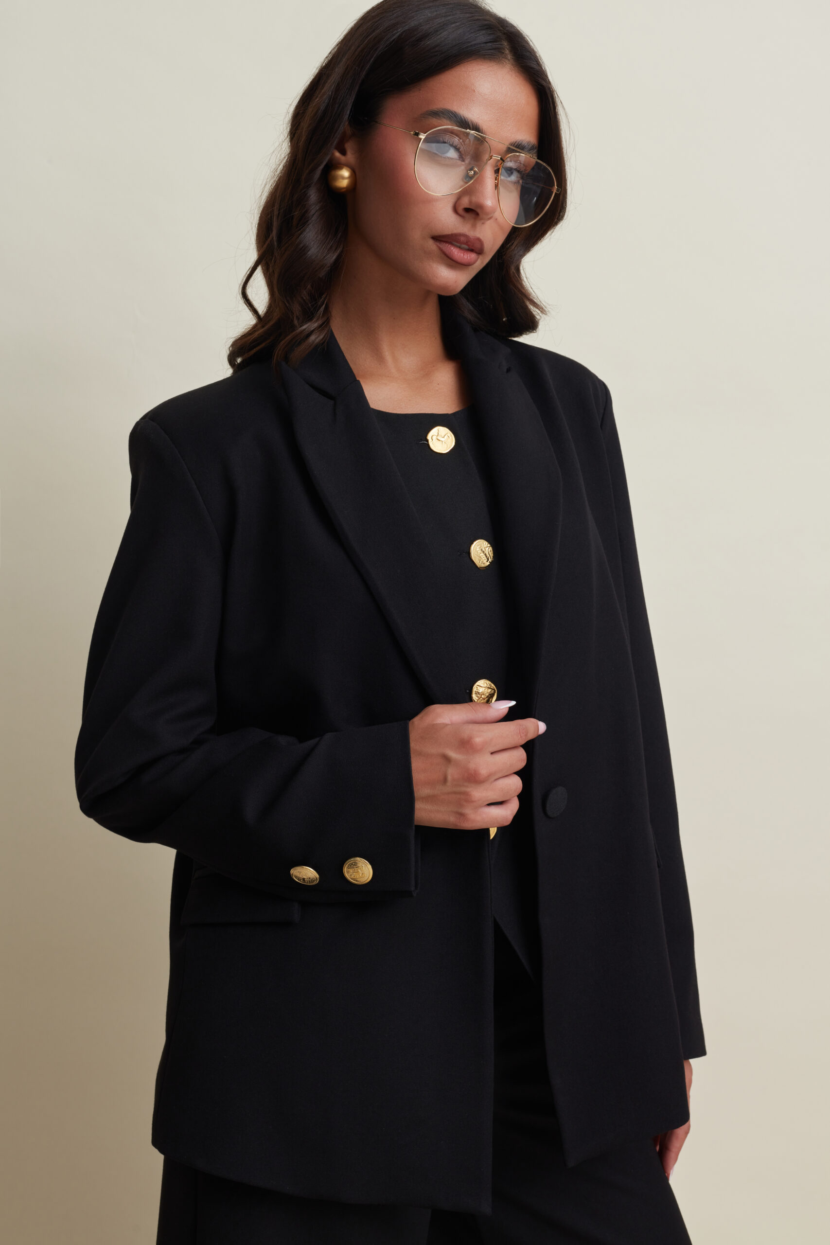 - This three-piece suit with sculptured gold buttons will make your office style more interesting than your colleagues think.