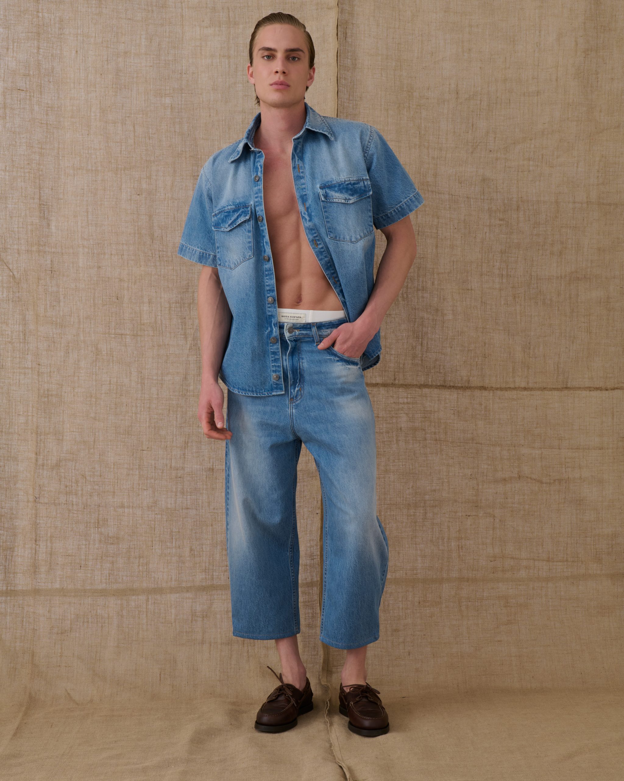 Versatile one-size denim shirt with a relaxed fit and timeless appeal. Wear it solo, layered over a top, or styled as a lightweight jacket for effortless cool.