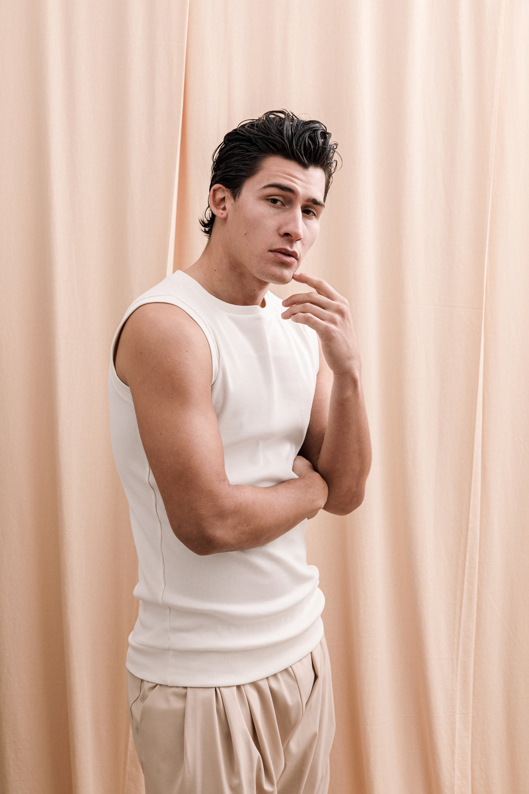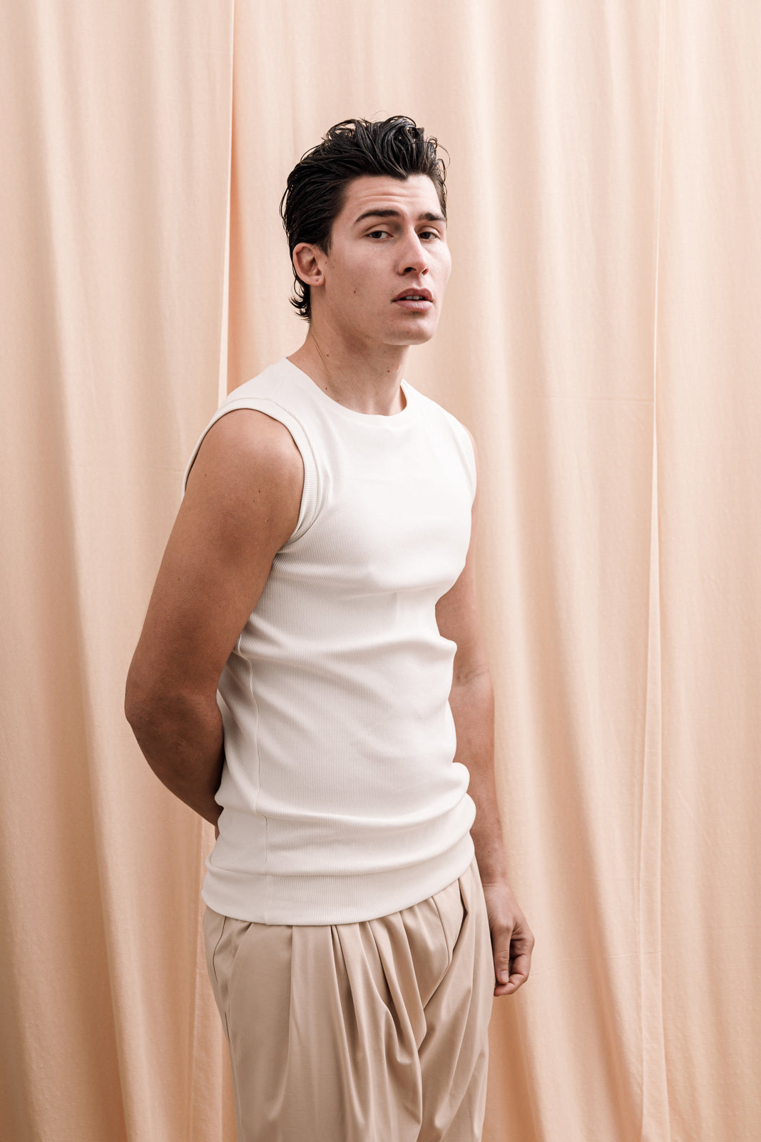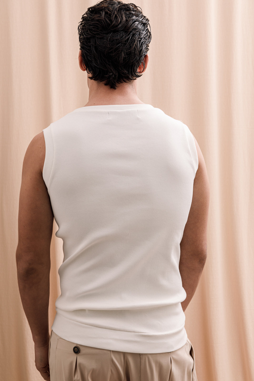 - This sleek ribbed tank redefines modern minimalism with its structured fit and contoured detailing. Crafted from breathable fabric, it offers a refined silhouette that’s perfect for layering or wearing on its own. A versatile essential for effortless style.