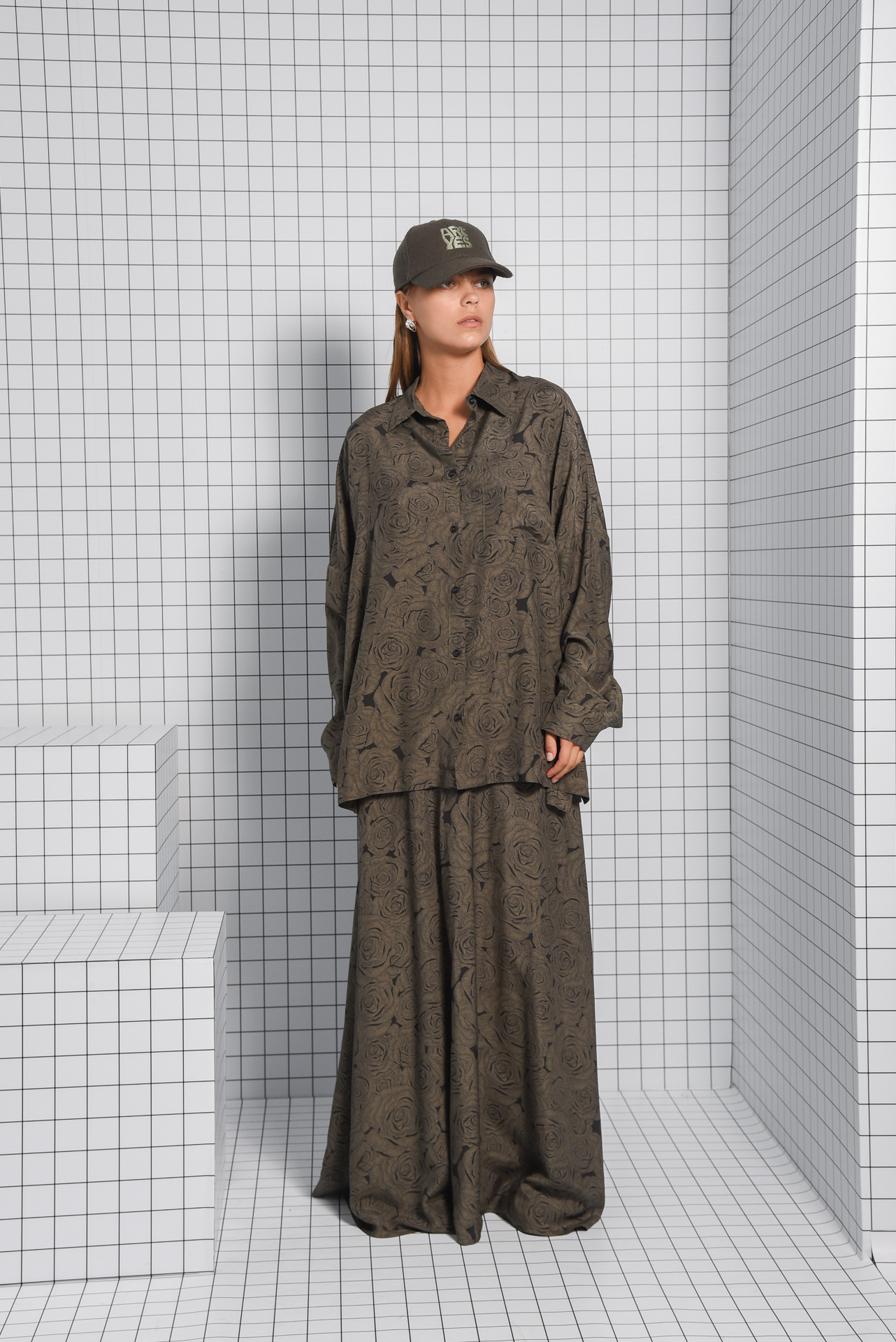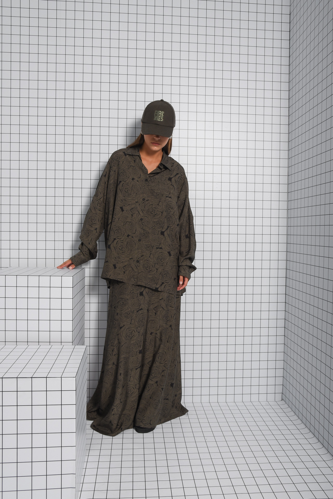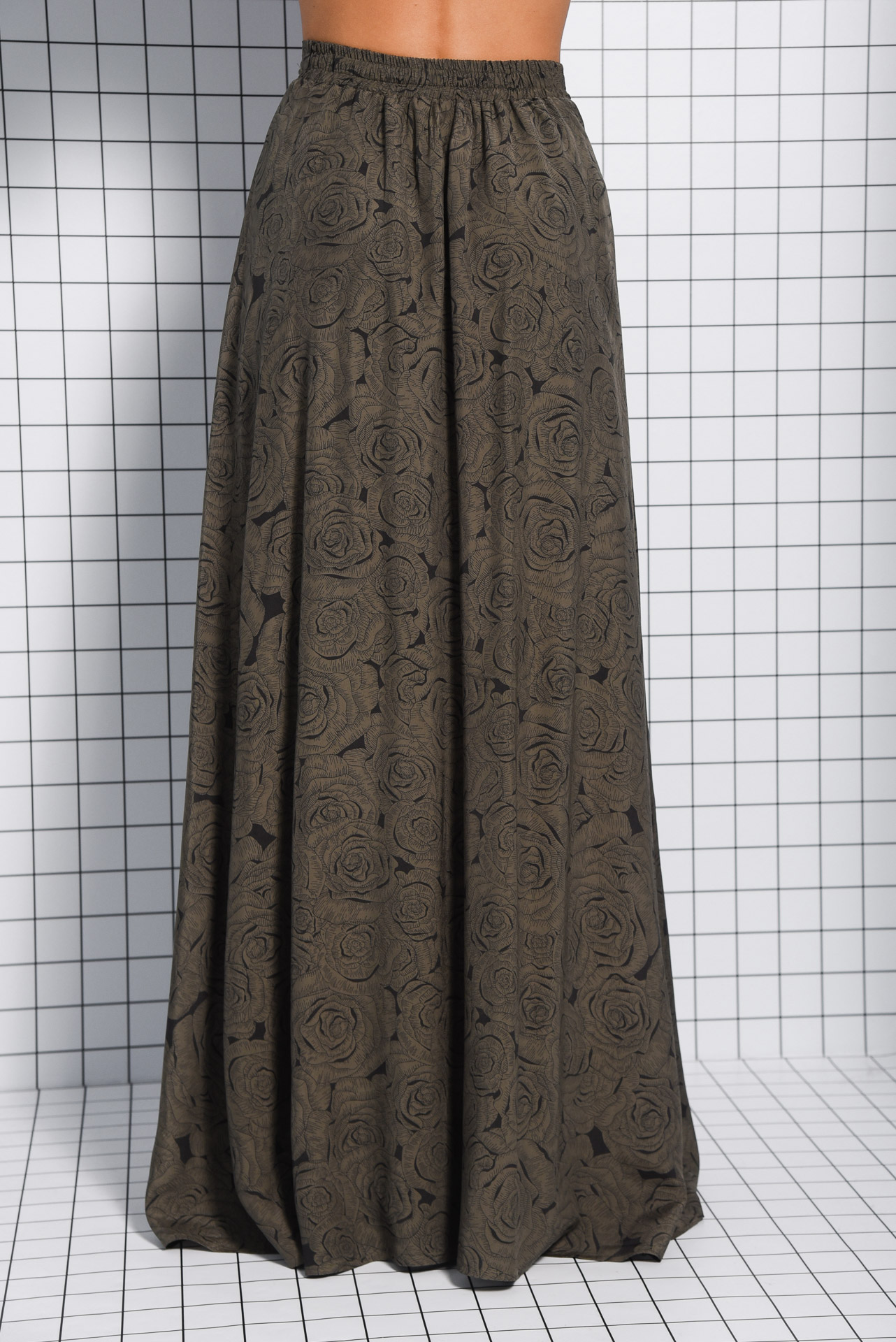 - The Courage Skirt features a full-length, wide silhouette with an intricate rose pattern, crafted from lightweight fabric for comfort and movement. With an elastic waistband for an easy fit, this versatile skirt offers both elegance and ease, perfect for creating effortless, statement looks.