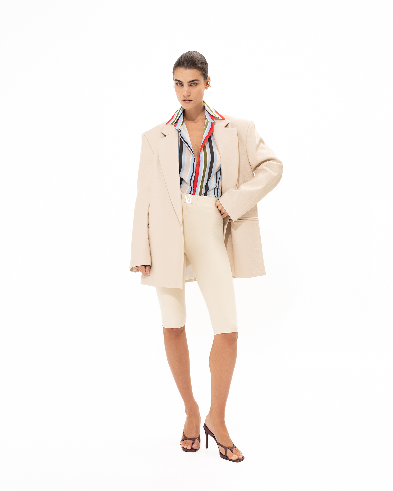 A sleek oversized faux leather blazer that adds effortless edge to any look.