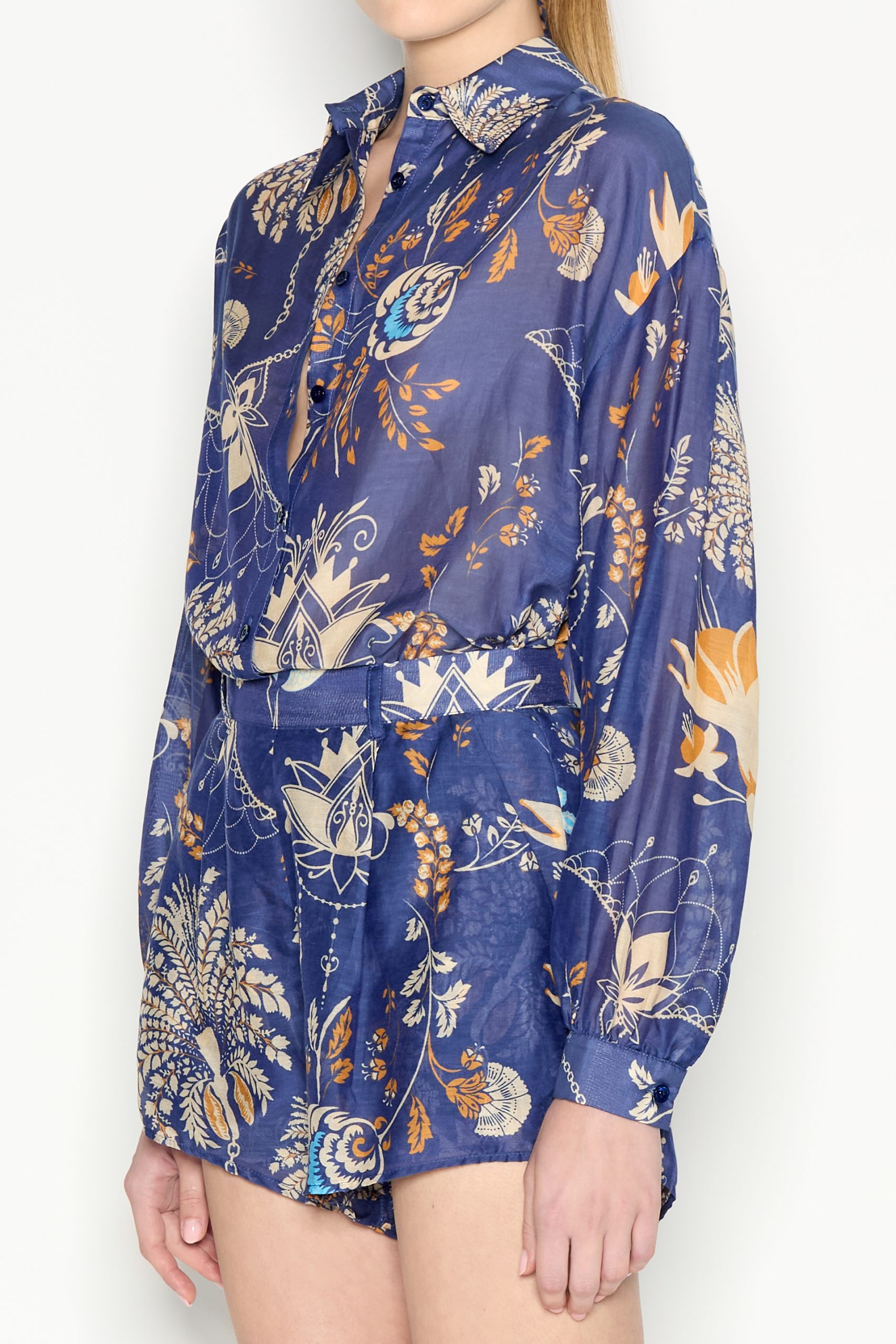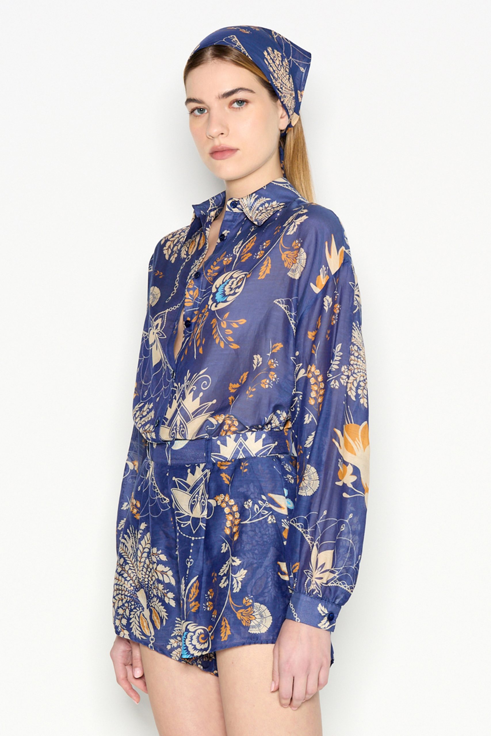 Step into summer with the Cuban shorts in vibrant blue. Designed to pair seamlessly with the shirt and scarf from the collection, these lightweight shorts feature an all-over floral print and a relaxed fit for maximum comfort and style. Whether worn as a set or on their own, they offer a bold yet look, perfect for warm days and laid-back moments.