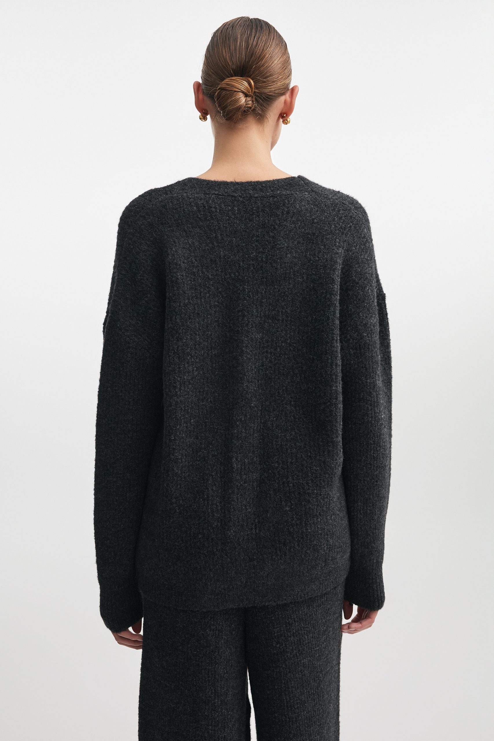 A refined cardigan in a relaxed silhouette.V-neckline with a clean button placket. Ribbed details define the cuffs and hem. A modern essential balancing comfort and quiet polish.