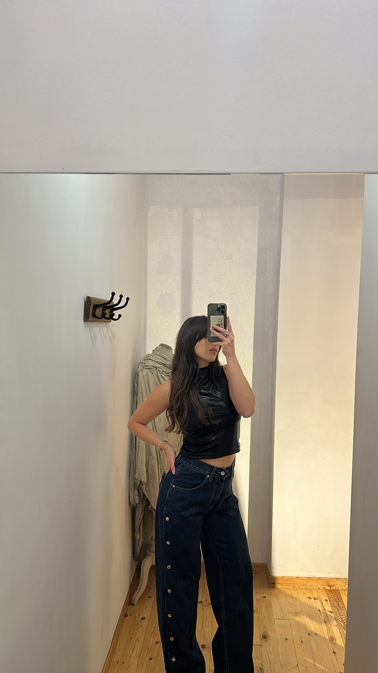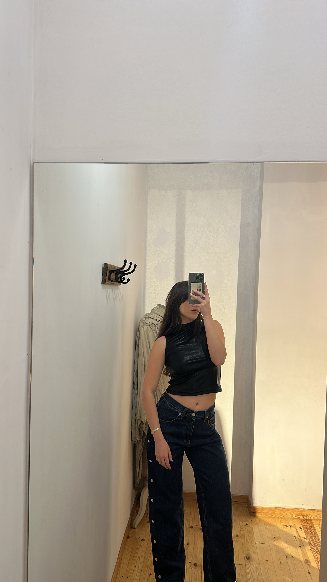 Το Erin είναι ένα αμάνικο τοπ από ελαστικό μεταλιζέ ύφασμα, με fitted σιλουέτα και ομαλή, λαμπερή υφή.