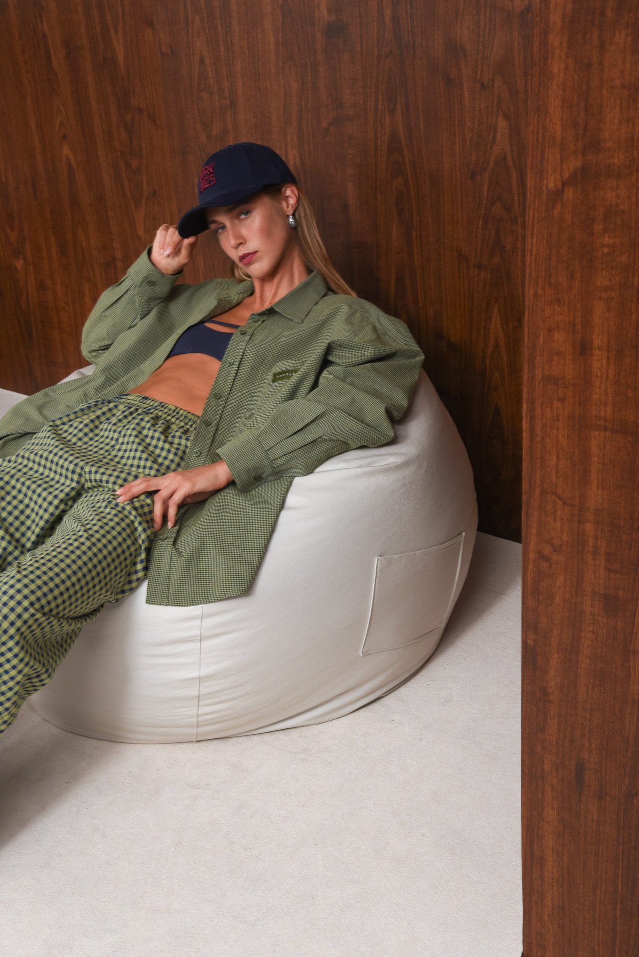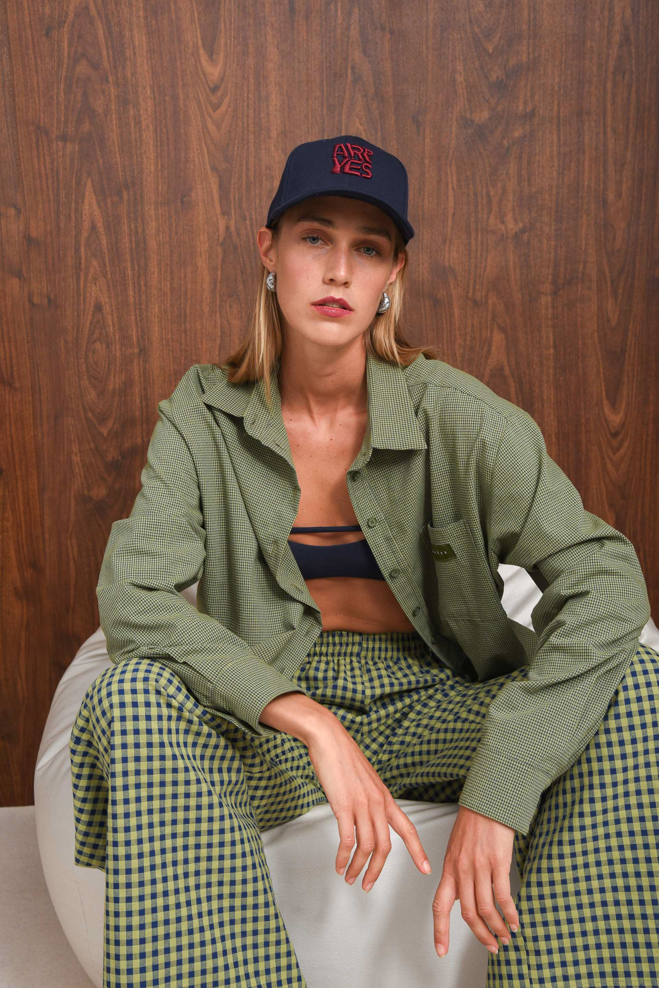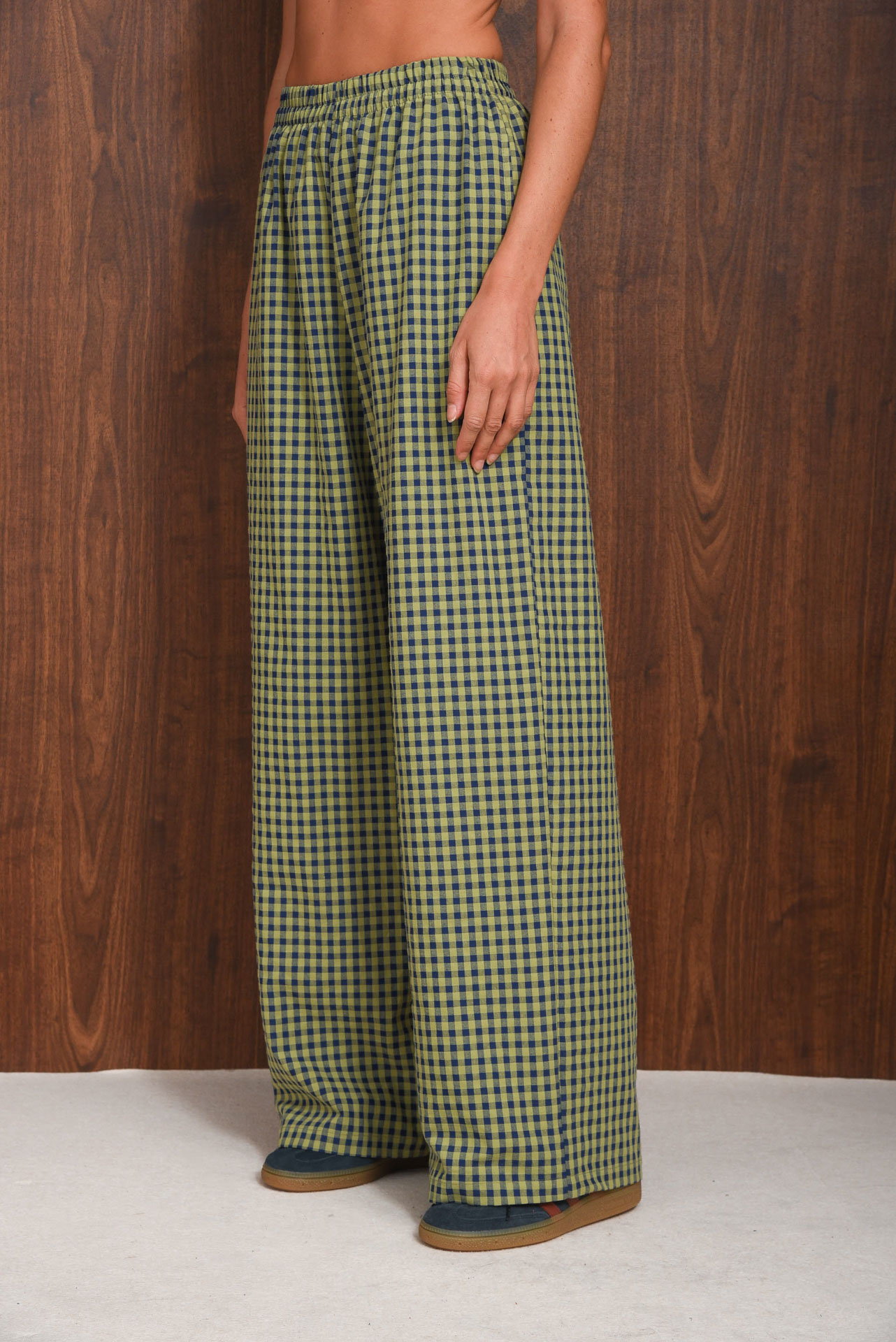 Grace Pants are wide-leg pants in a soft green and navy blue gingham check. Designed with an elastic waistband for comfort, side pockets, and a relaxed drape that flows effortlessly. Lightweight cotton makes them perfect for everyday wear.