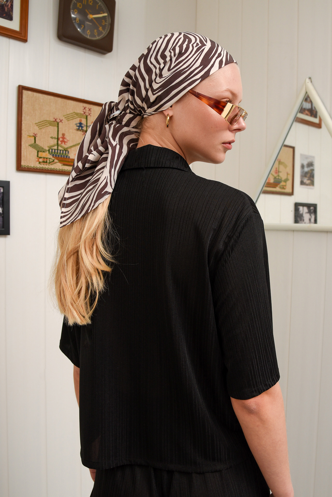 Effortlessly chic, the Guava shirt is crafted from lightweight, pleated fabric for a relaxed yet refined fit. Featuring a striking black hue with a collar and button placket, this short-sleeve shirt blends comfort with modern sophistication.