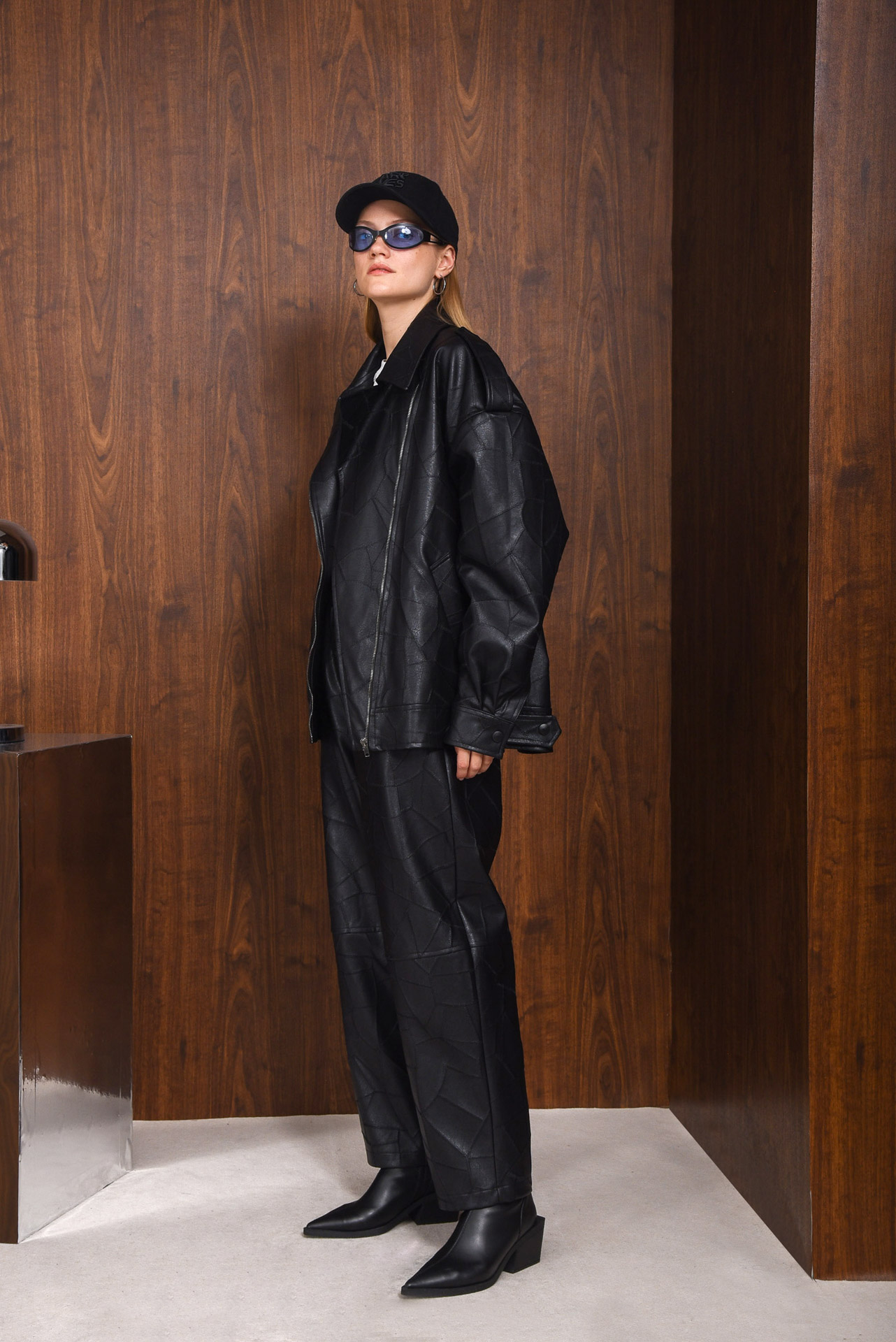 The Identity Faux Leather Pants blend structure and ease in a contemporary silhouette. Crafted from soft, textured faux leather with a patchwork effect, they feature a relaxed fit, elastic waistband, and straight leg. Comfortable yet elevated, these pants are easy to style and perfect for any occasion.