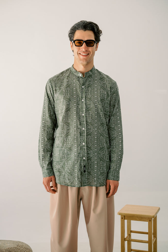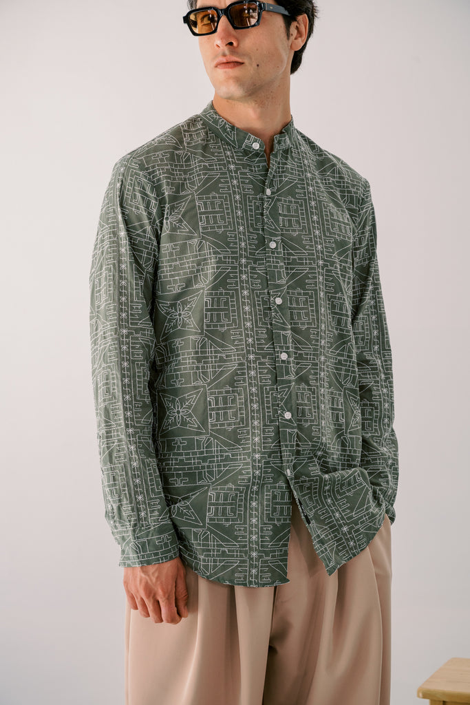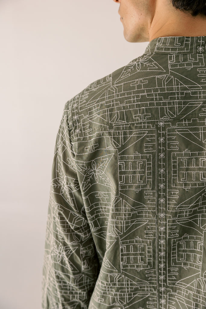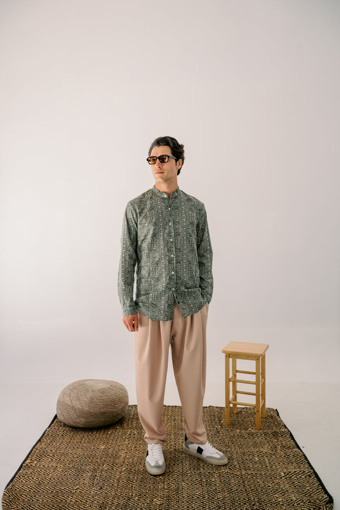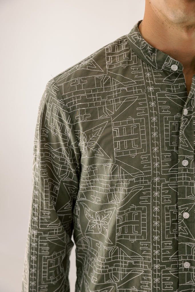 • Πουκάμισο με Μάο Γιακά με κεντημένο μοτίβο.