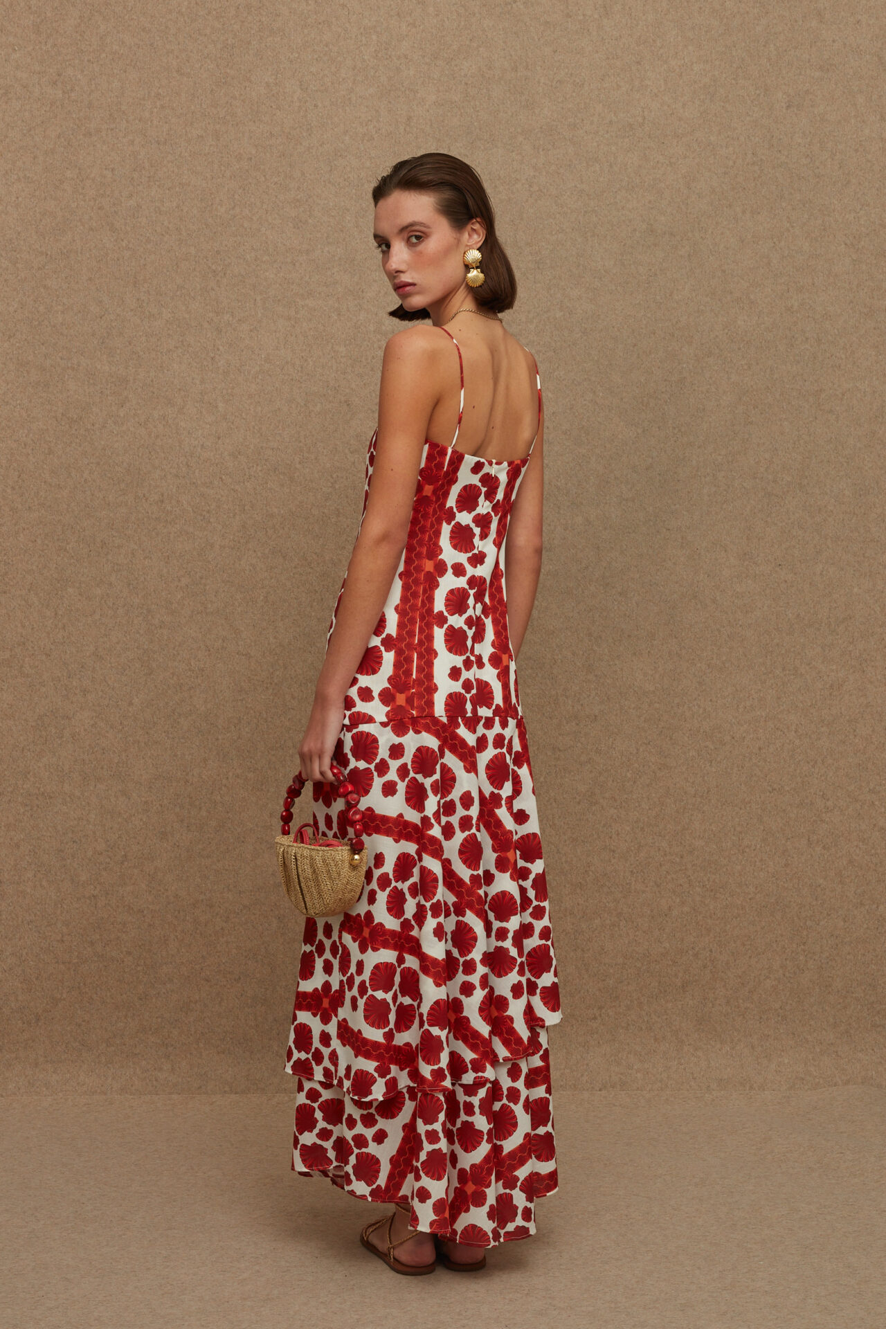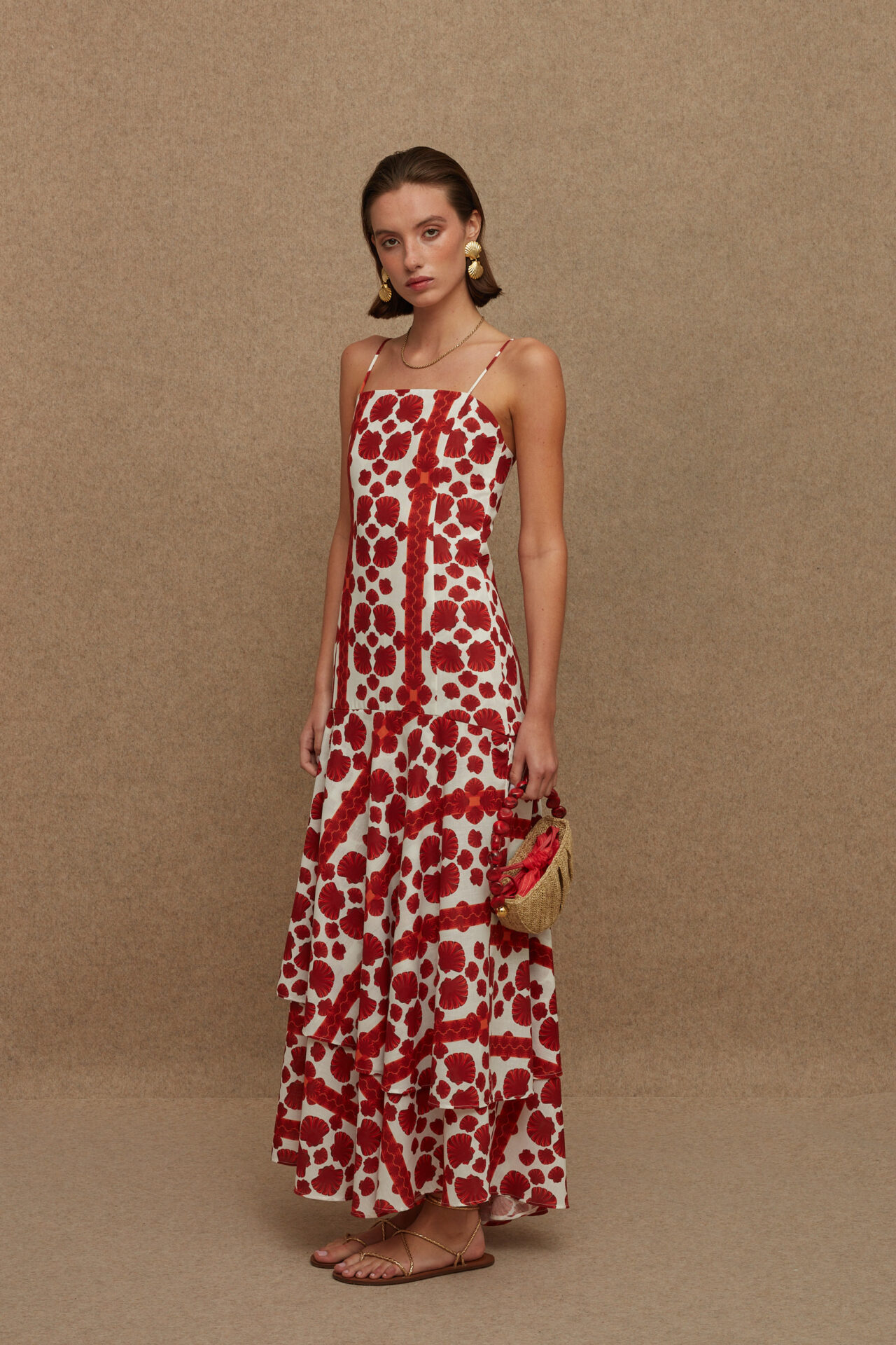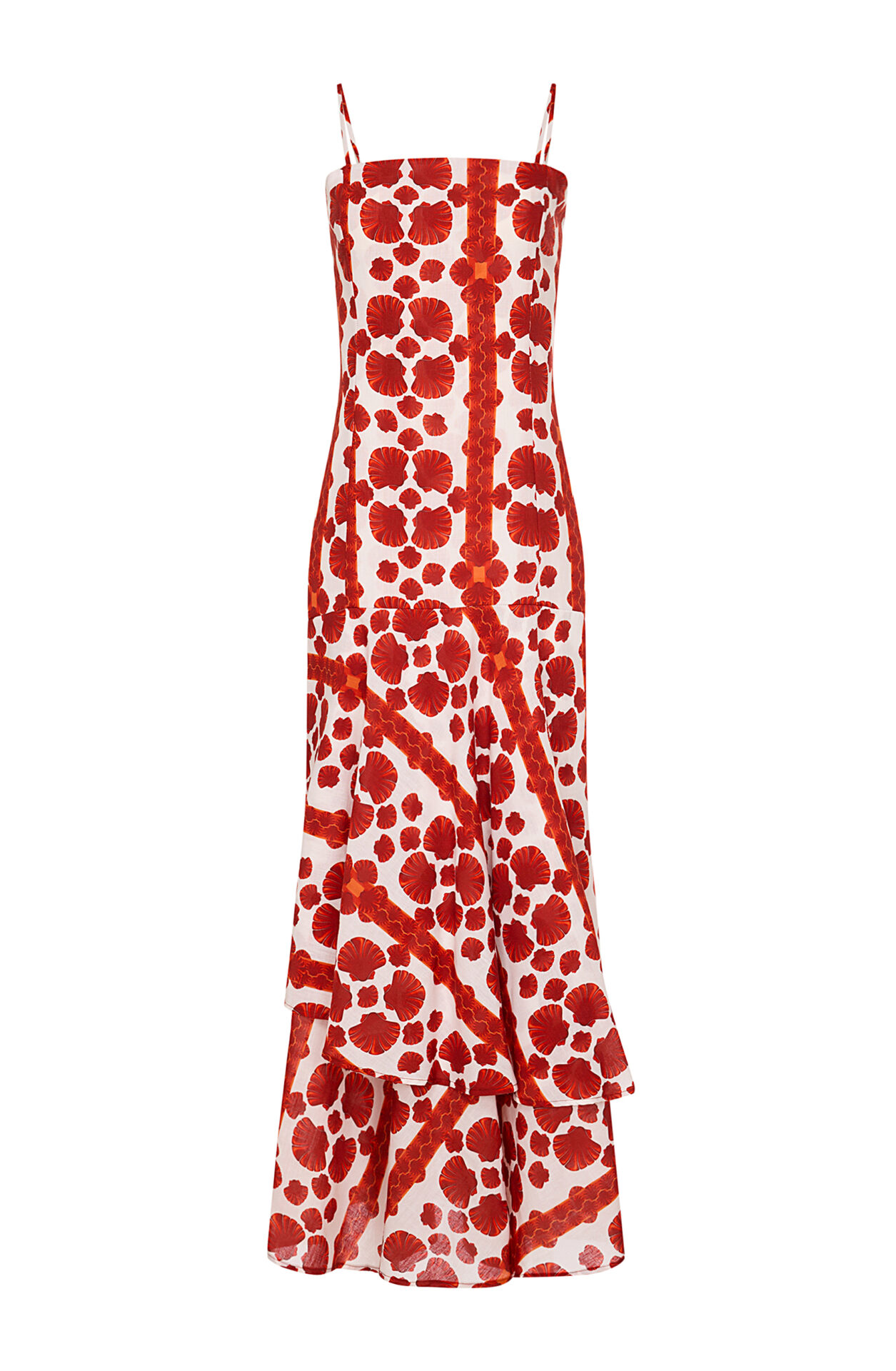 An ankle-length dress with bodycon design, ruffles on the length & thin straps. Perfect choice for your island trips.