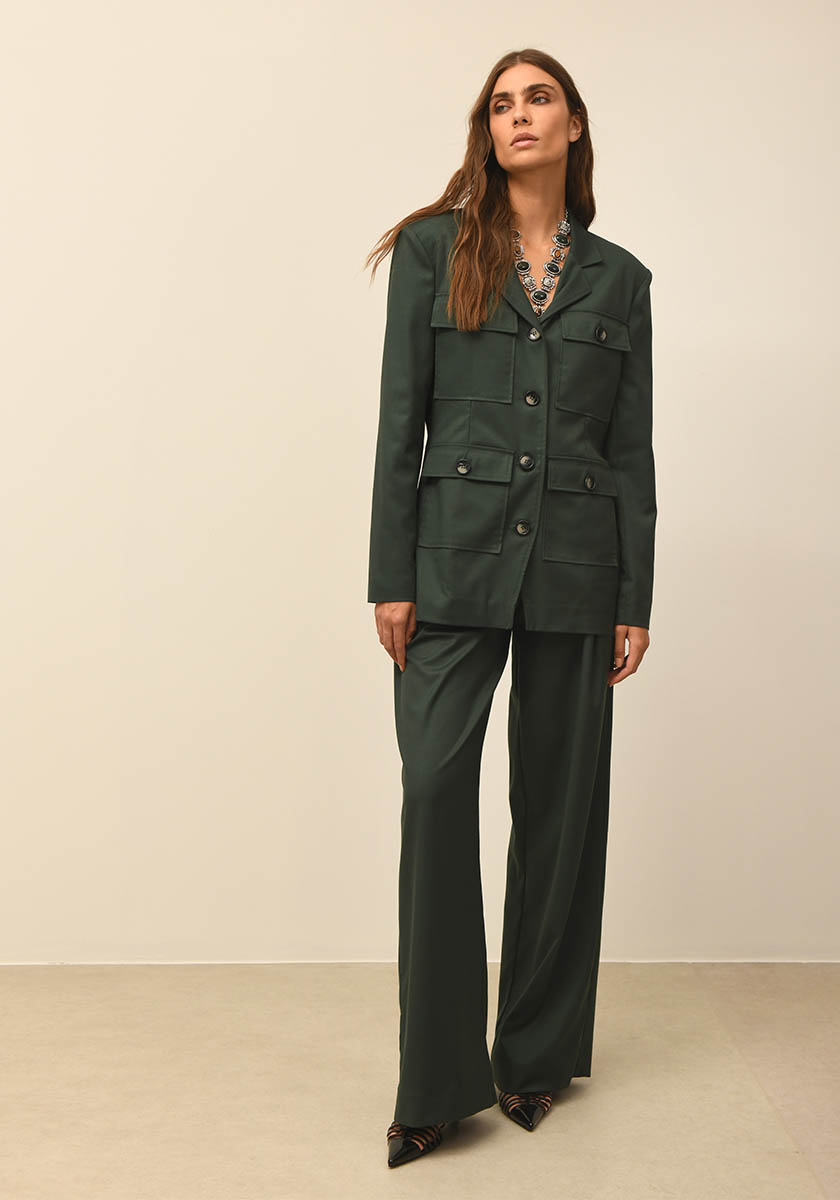• Slim fit jacket with lapel collar and four front square pockets. Timeless in a strict style we suggest you combine it with the Twiggy Forest Green Pants.