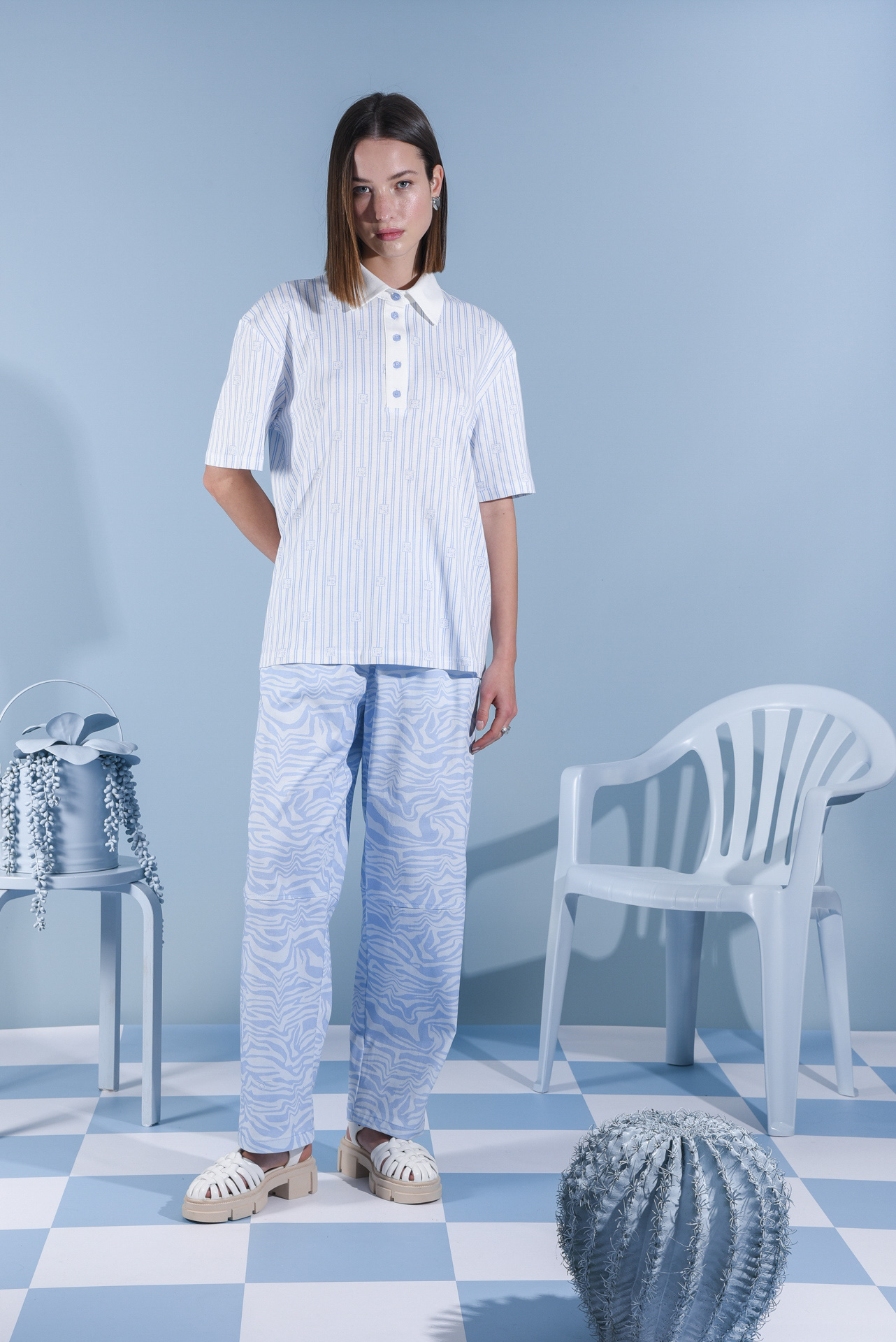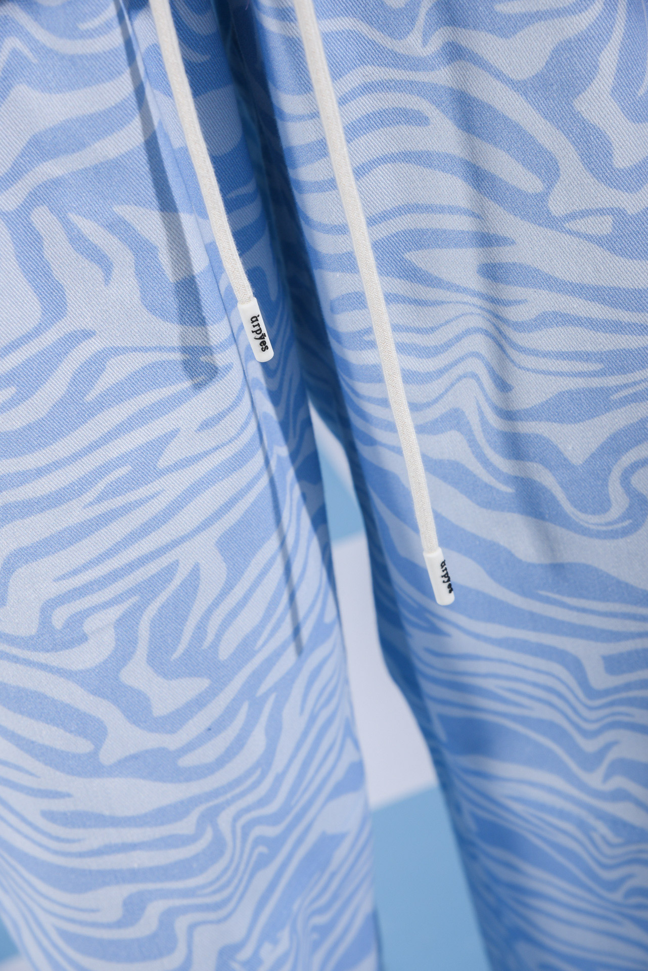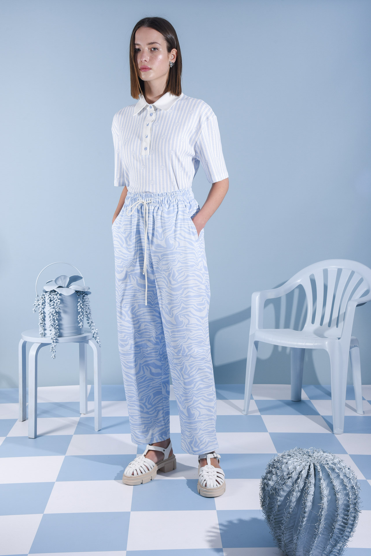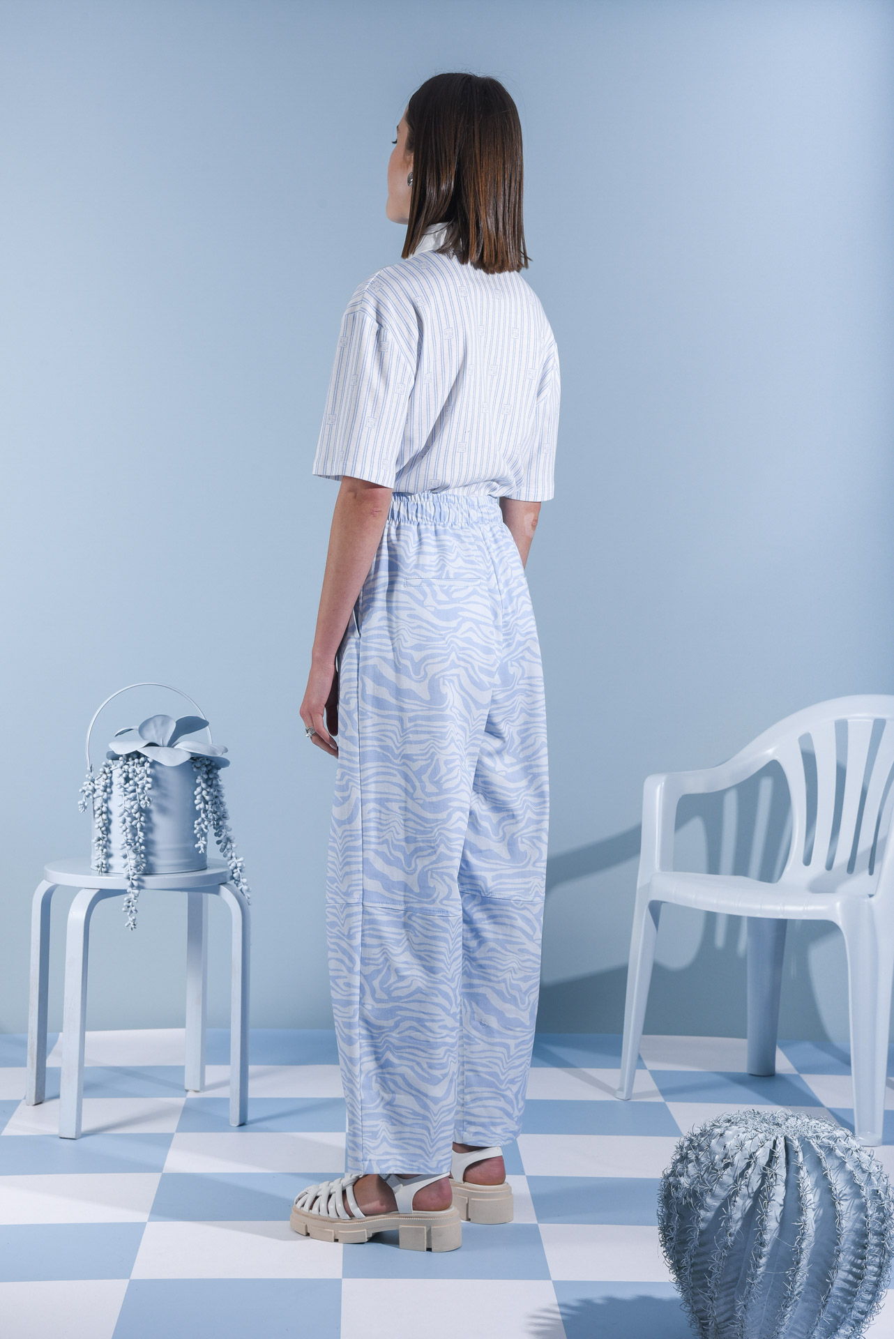 - Introducing our “Mel B Pants,” crafted from cotton fabric featuring a captivating zebra print inspired by wavy patterns. Designed with an elasticated waistband for comfort and a wide leg with narrow finish, these pants boast lace details on the waistband featuring the detailed “Arpyes” logo. Effortlessly pair them with the matching top or a plain tee for a coordinated ensemble.