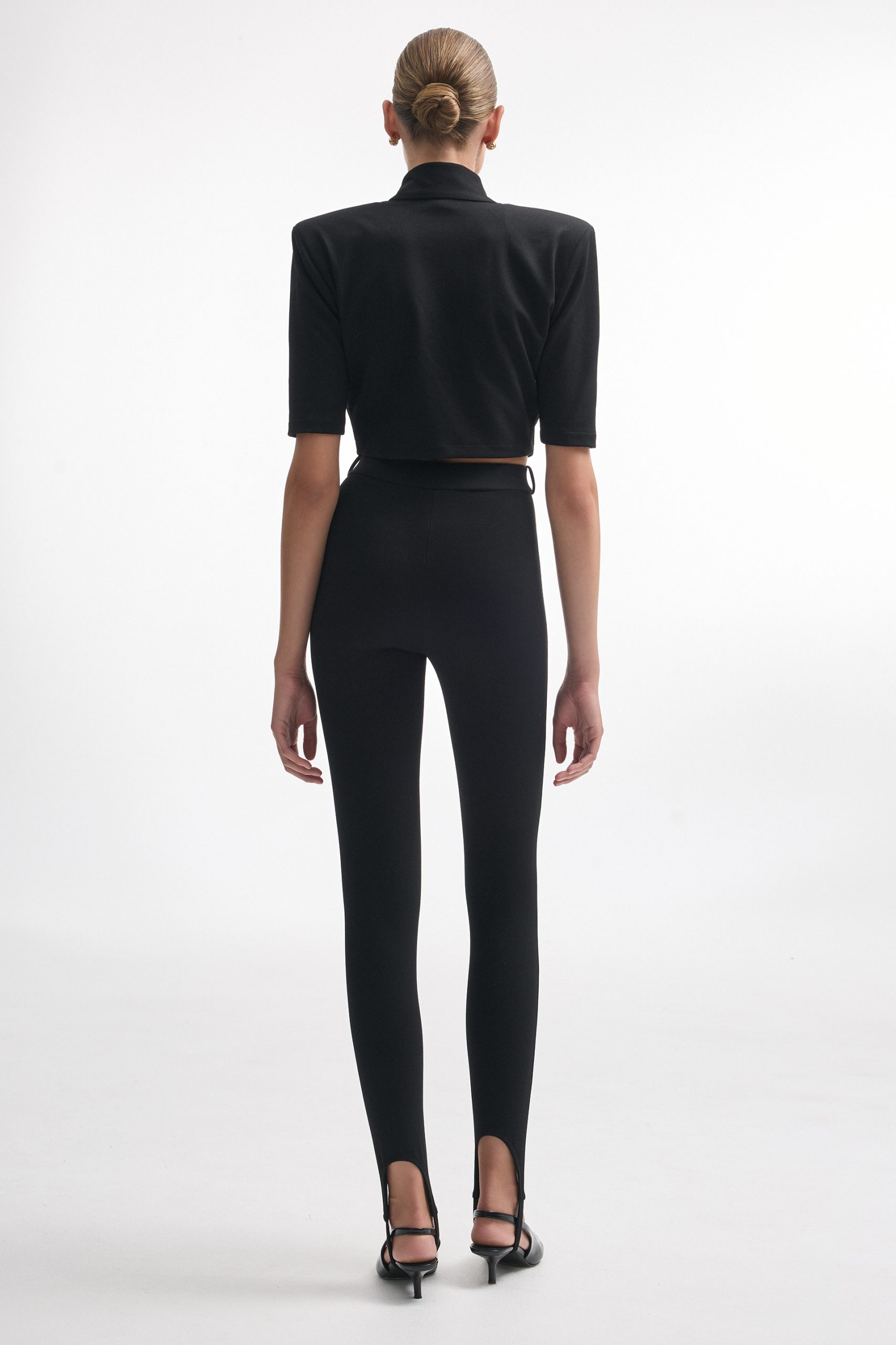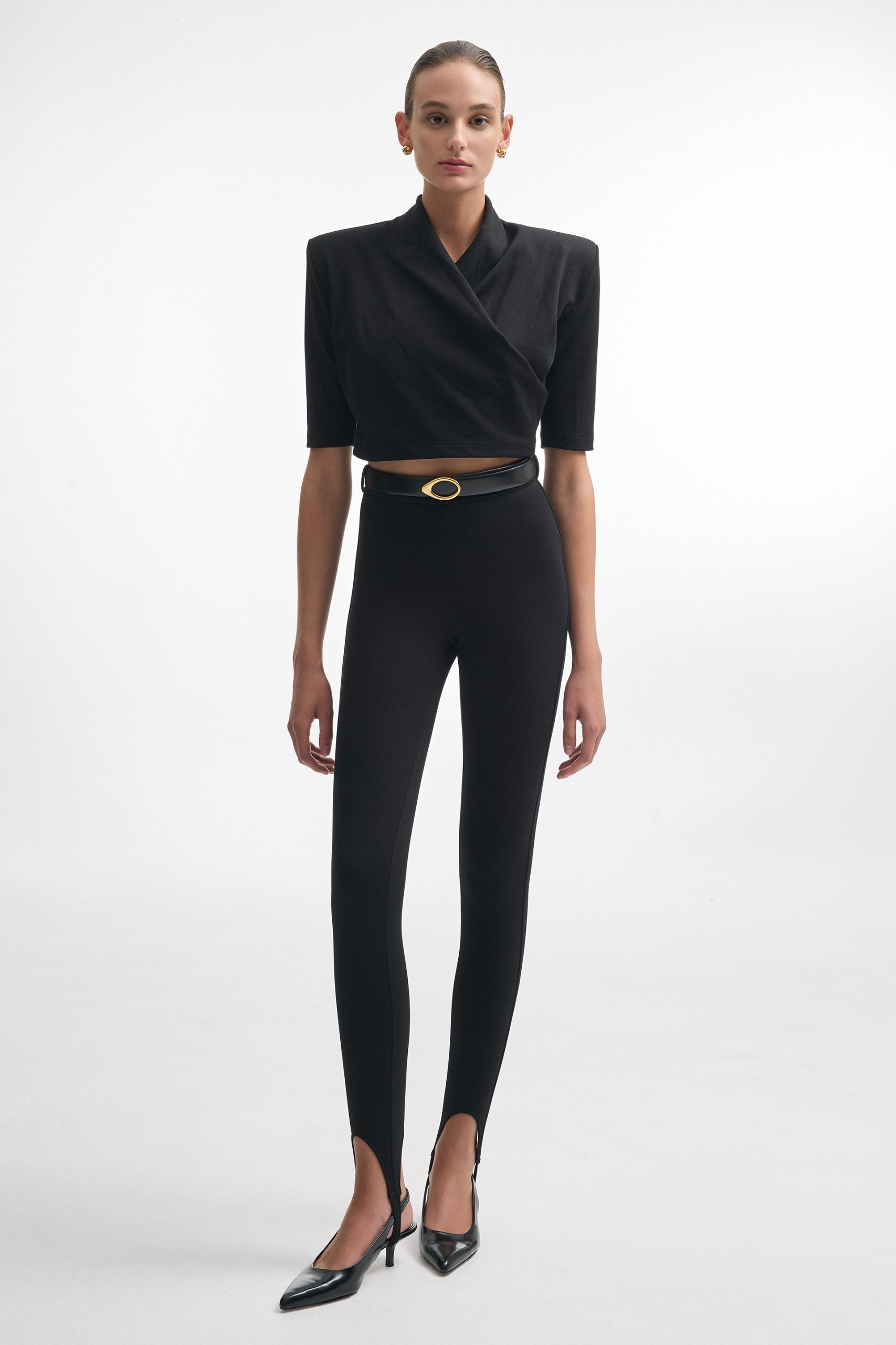 The Melanie crop top has a ribbed wrap design that naturally highlights the waist. With a mock neck and 3/4 sleeves, it balances structure and softness. Pair it with high-waisted trousers, skirts, or jeans,  it’s a piece that works for both casual days and dressed-up looks.