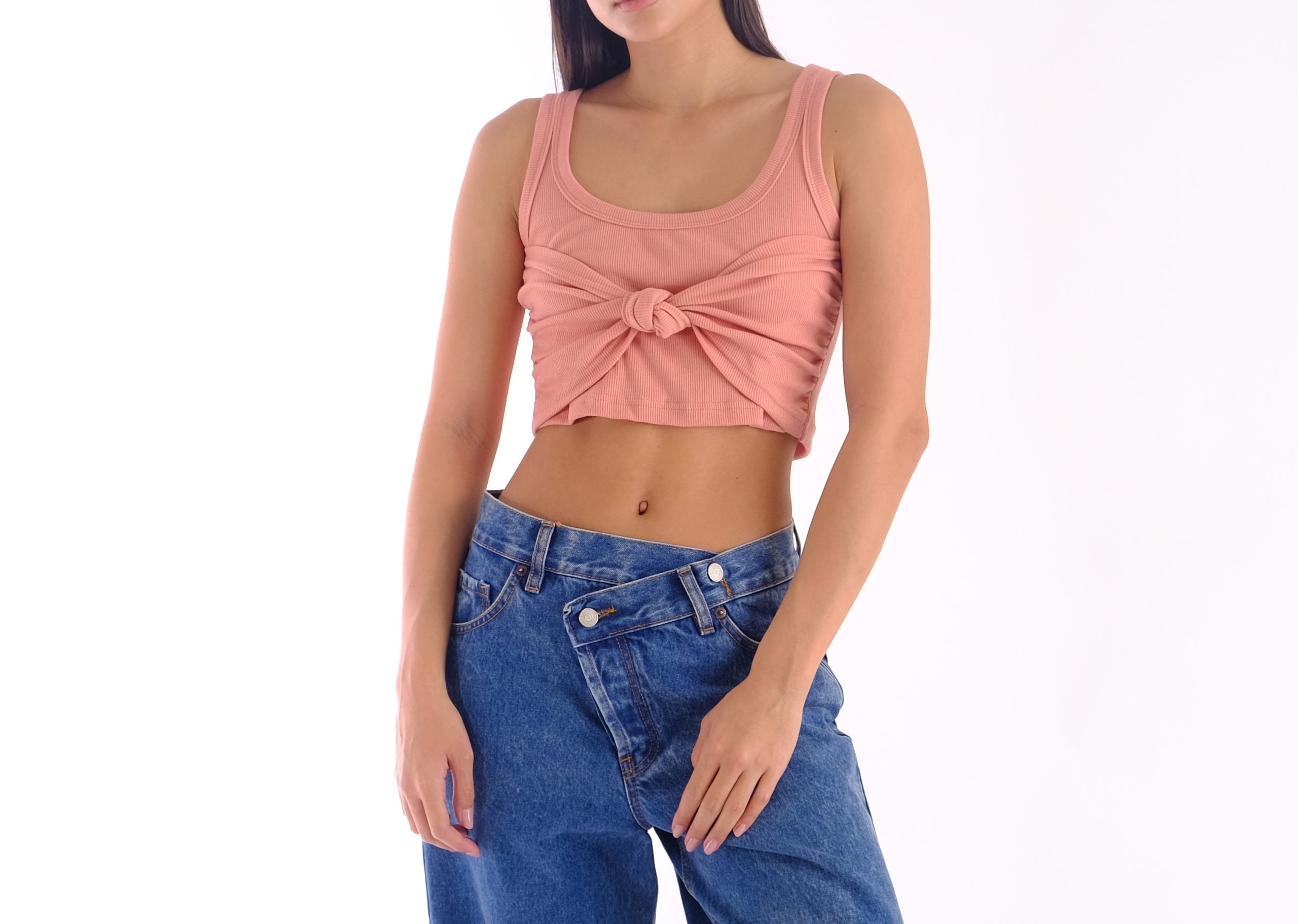 Το Michelle Top είναι σχεδιασμένο σε rib ύφασμα από οργανικό βαμβάκι, με κόμπο μπροστά που τονίζει τη μέση και προσθέτει χαρακτήρα στο outfit.