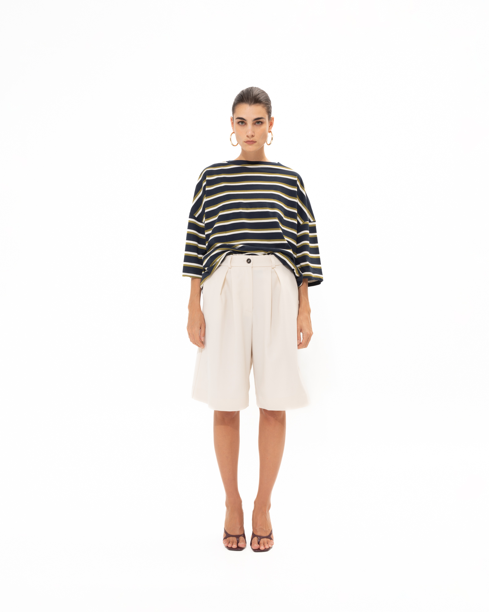 A chic striped blouse that effortlessly balances classic style with modern elegance.