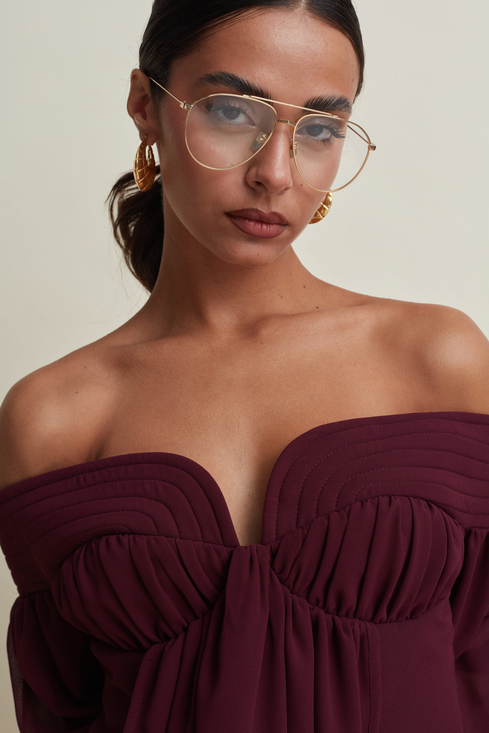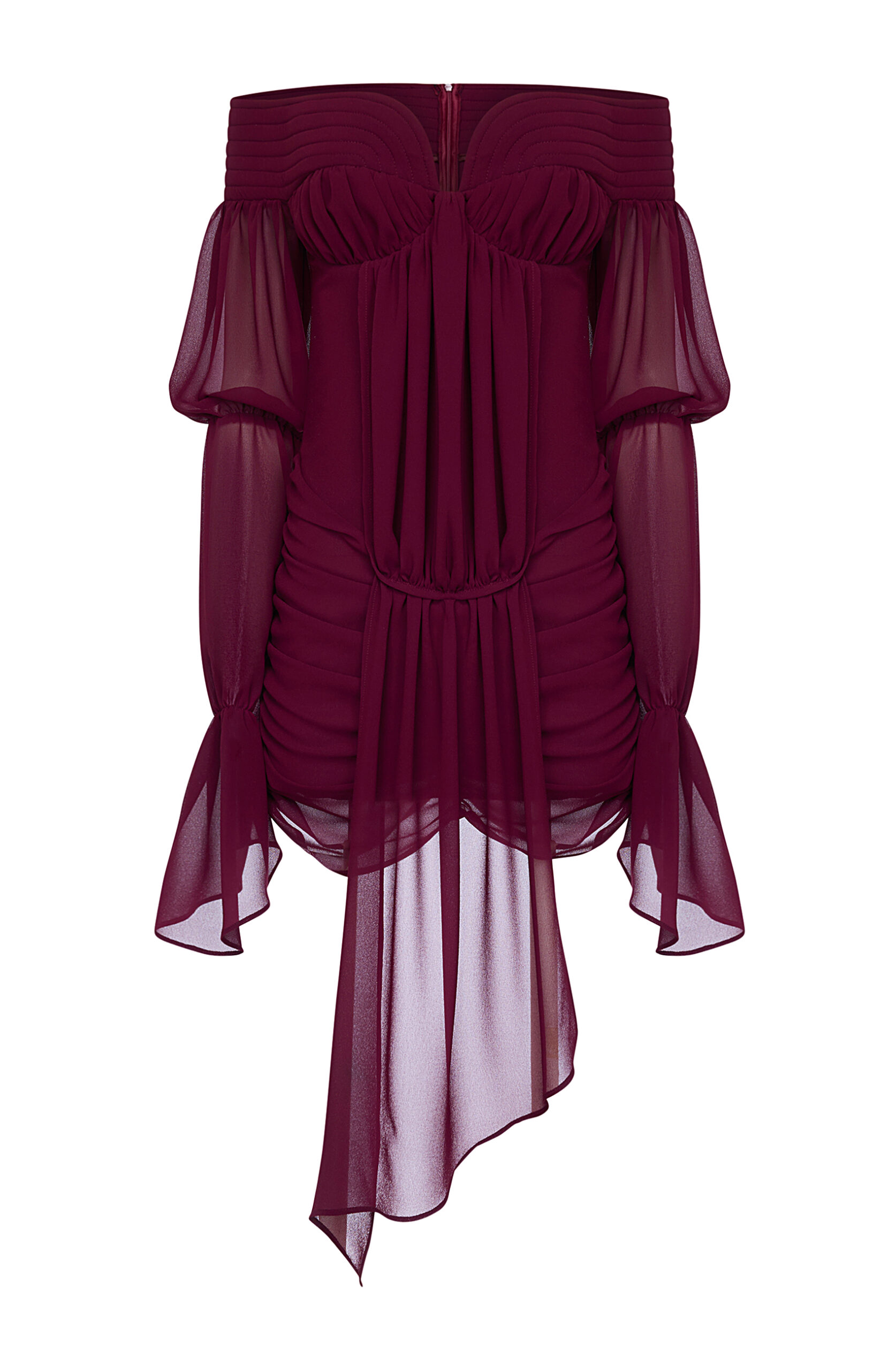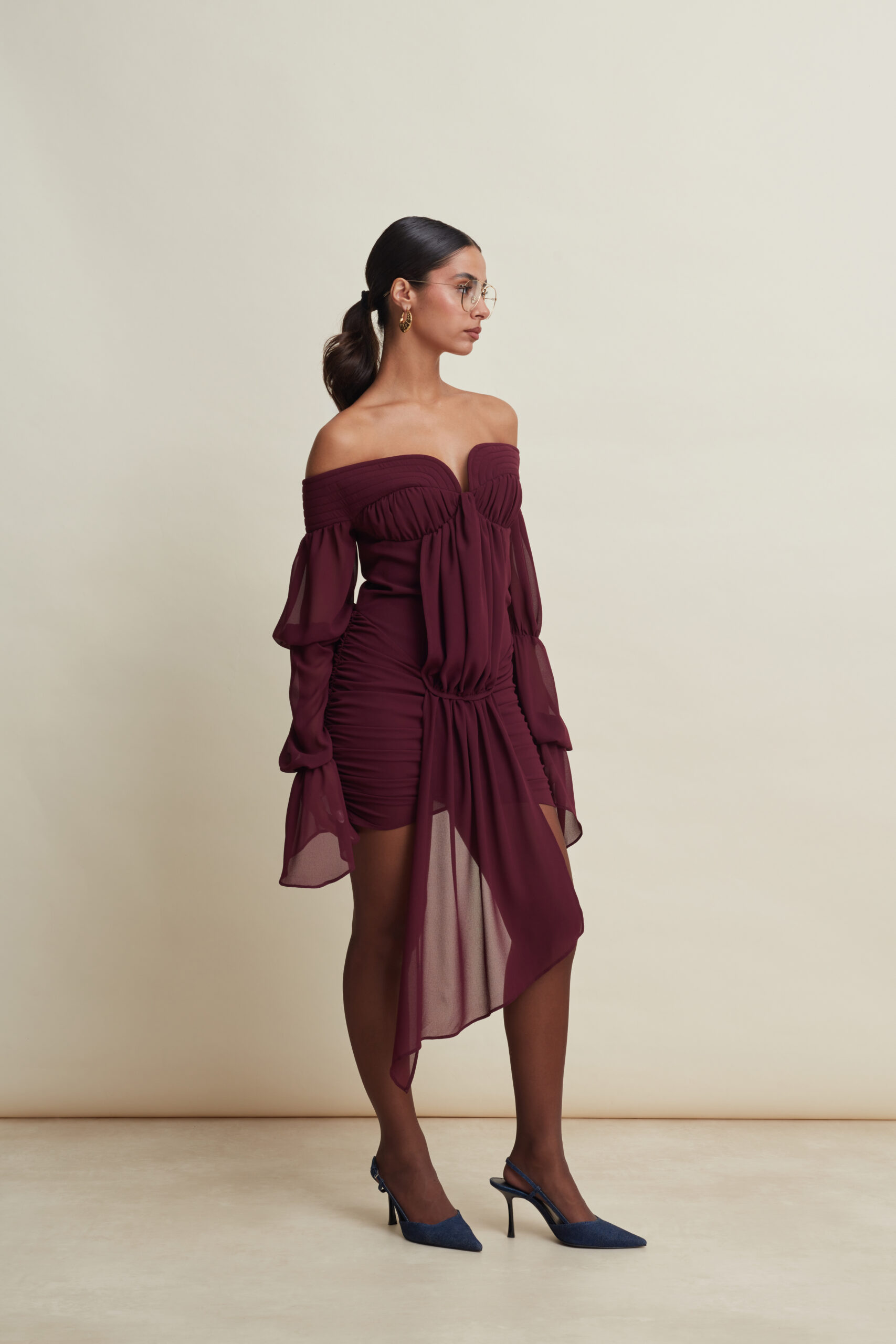 • Mini dresses is definitely our thing! We designed Odette dress with multiple sheer fabric layers to create structure and we left the shoulders off for an elegant sexy touch!