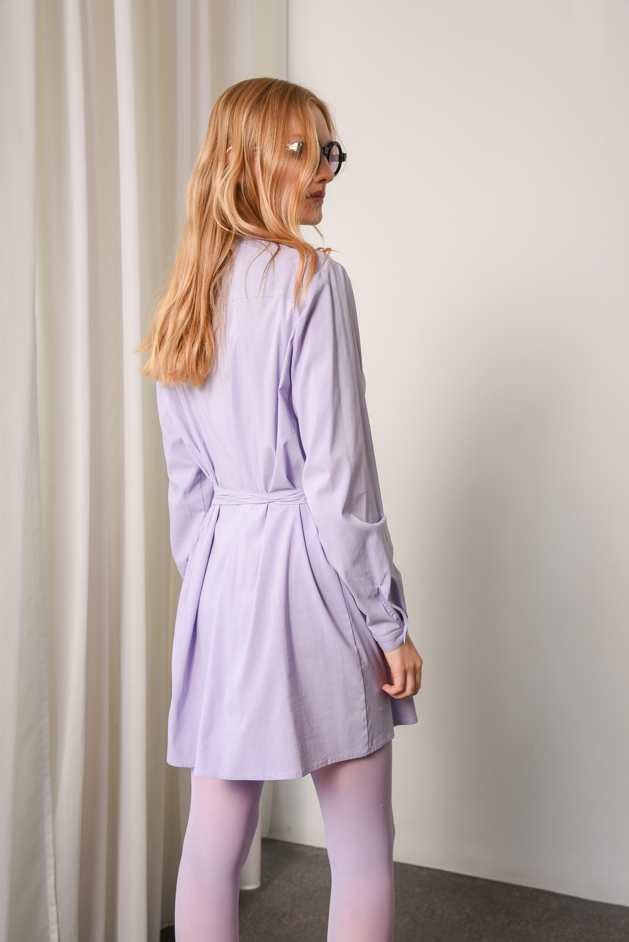 • Cut from cotton-poplin in a straight silhouette, this “Origami” shirt has a slim belt defining the waist and a utilitarian collar.