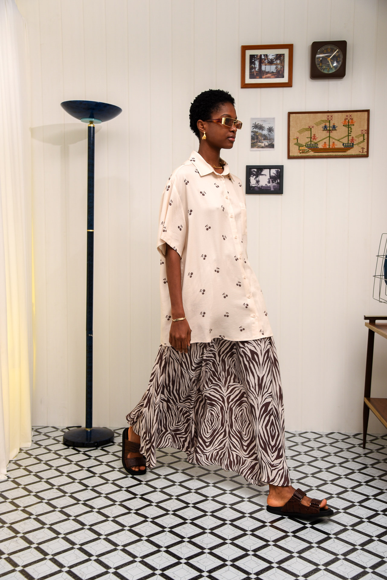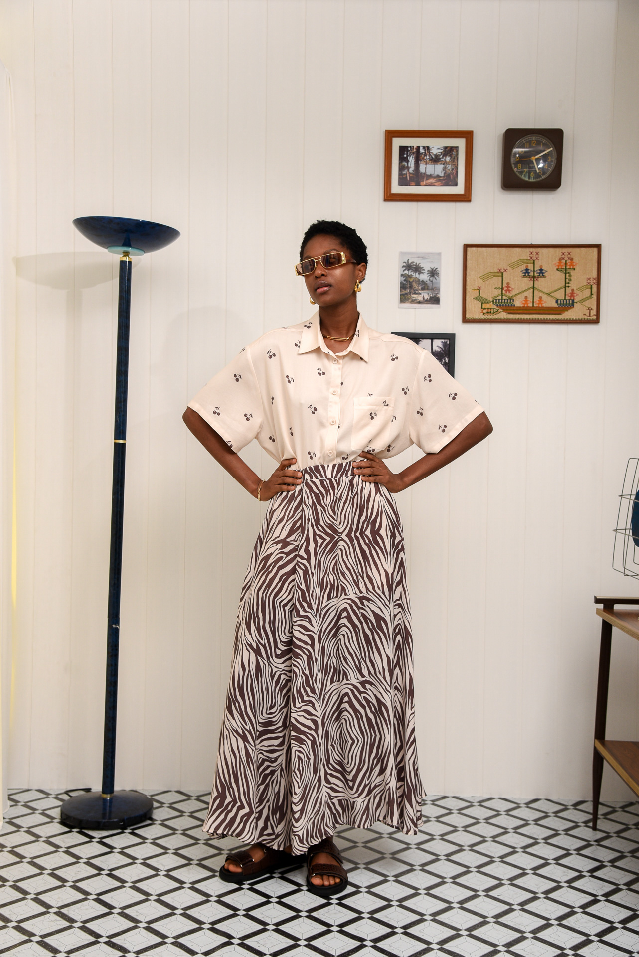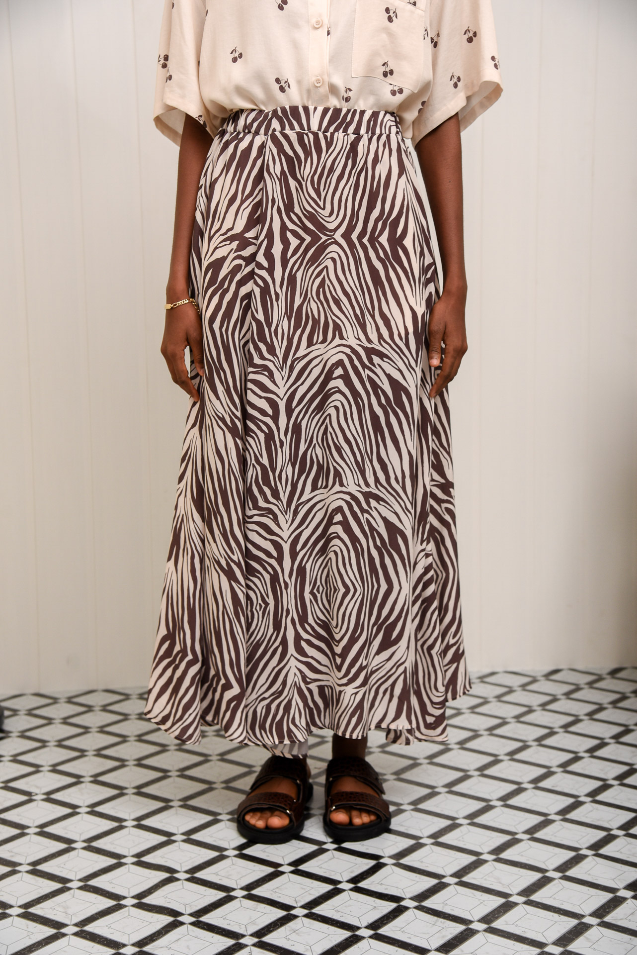 Pepper pot is a midi-length, flowy skirt with an elastic waistband for a comfy, easy fit. Made from soft, breathable fabric in a bold brown and cream zebra print. Lightweight and unlined, it moves beautifully with every step. Easy to style up or down—perfect with matching prints or simple tops for a relaxed statement look.