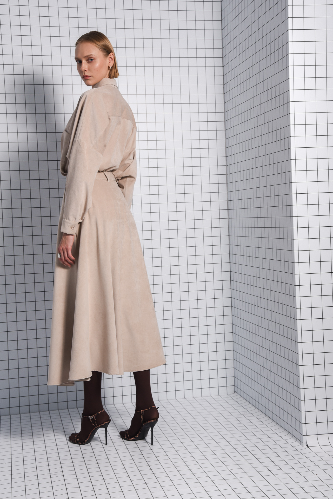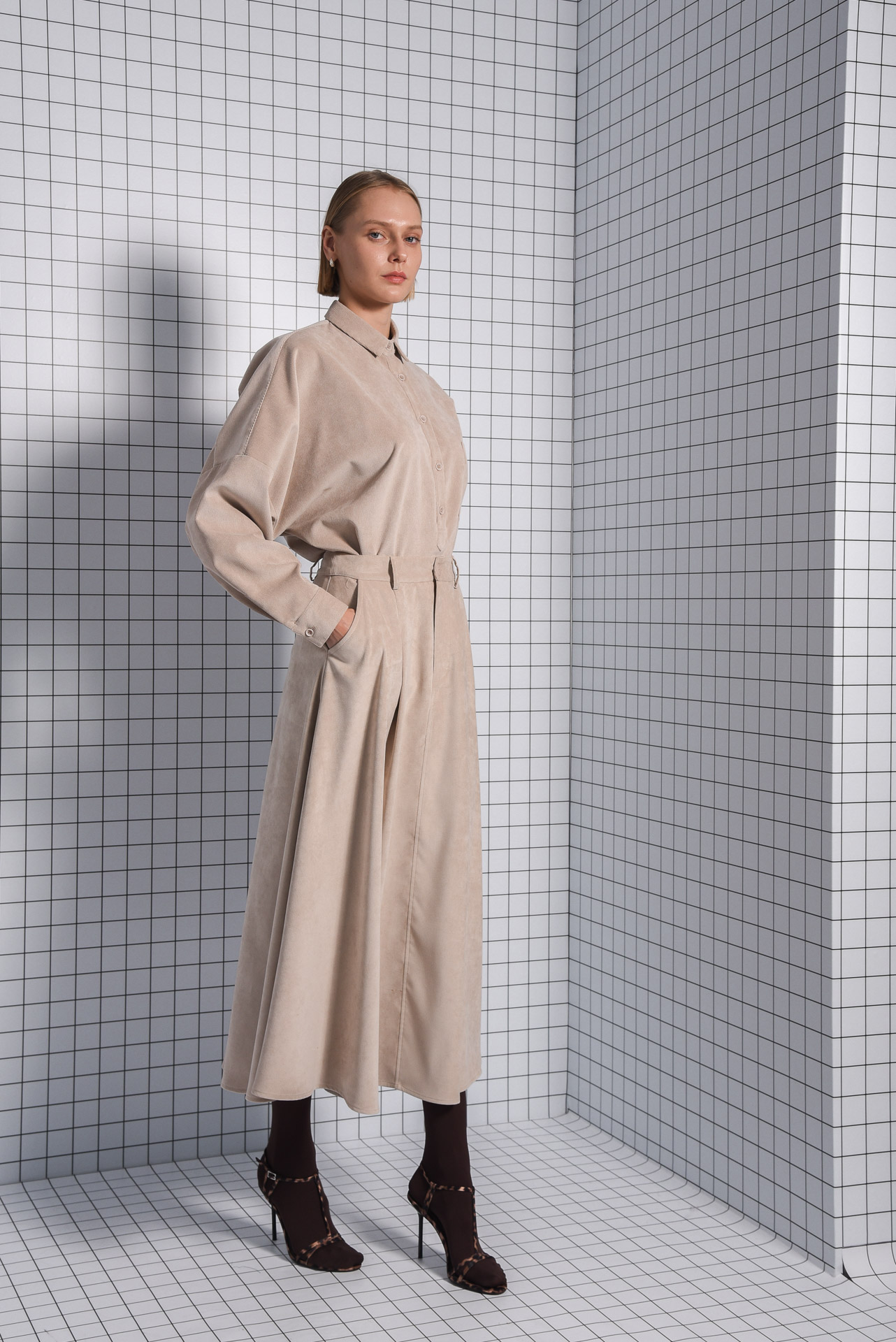 ARPYES PLAN BEIGE MIDI SKIRT