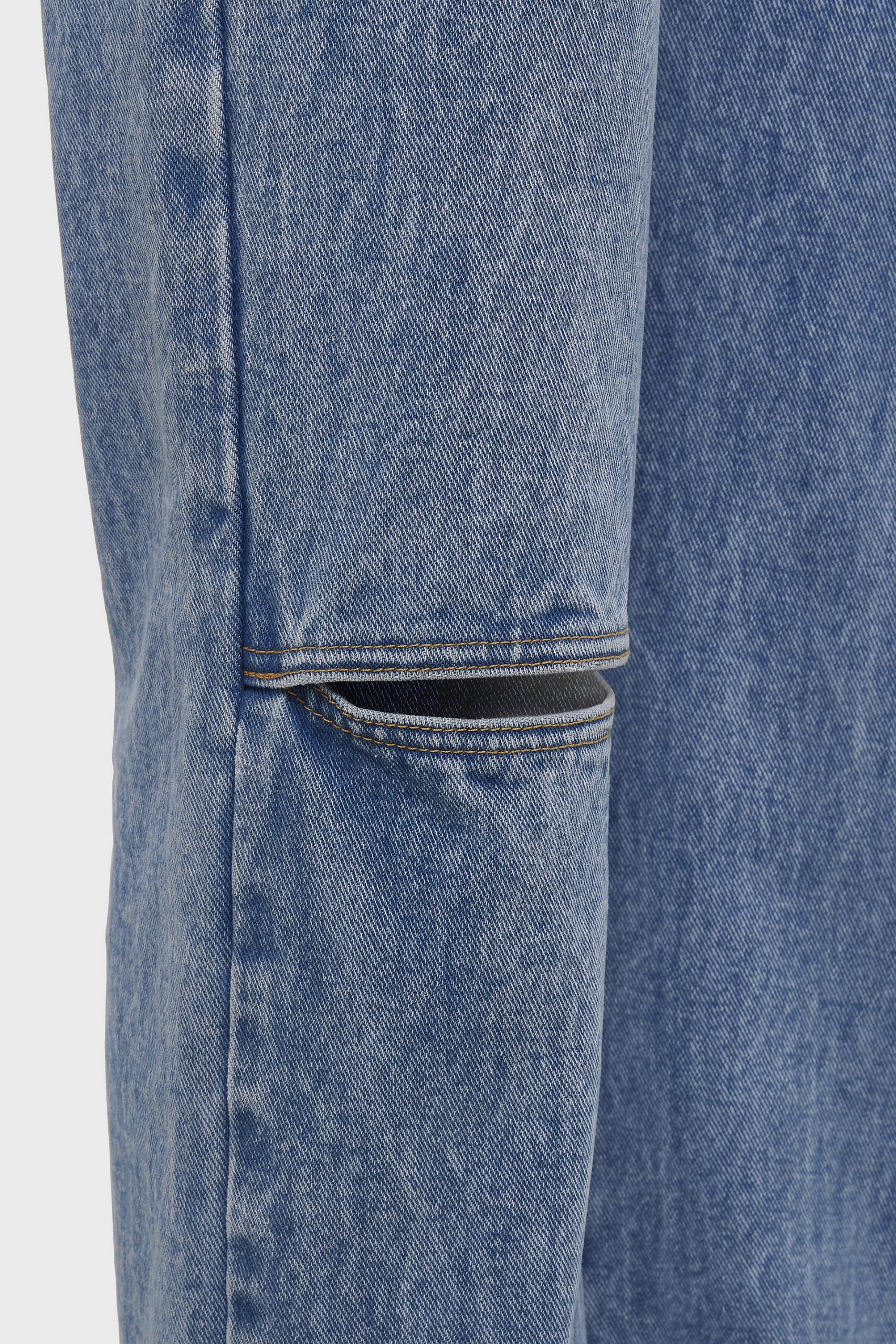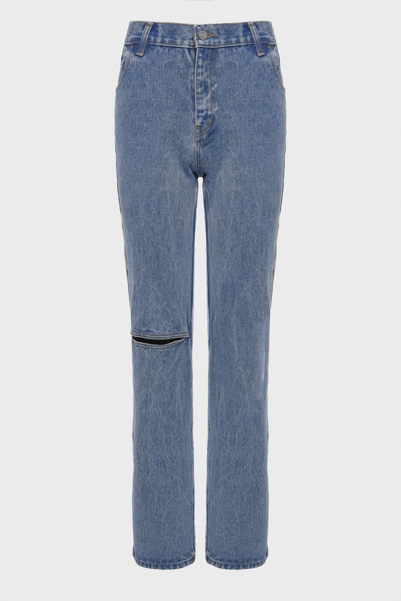 Timeless straight-leg denim trousers made from pure cotton. Featuring a relaxed fit and a subtle knee slit for a modern edge, they combine effortless style with everyday comfort, a wardrobe essential that never goes out of style.