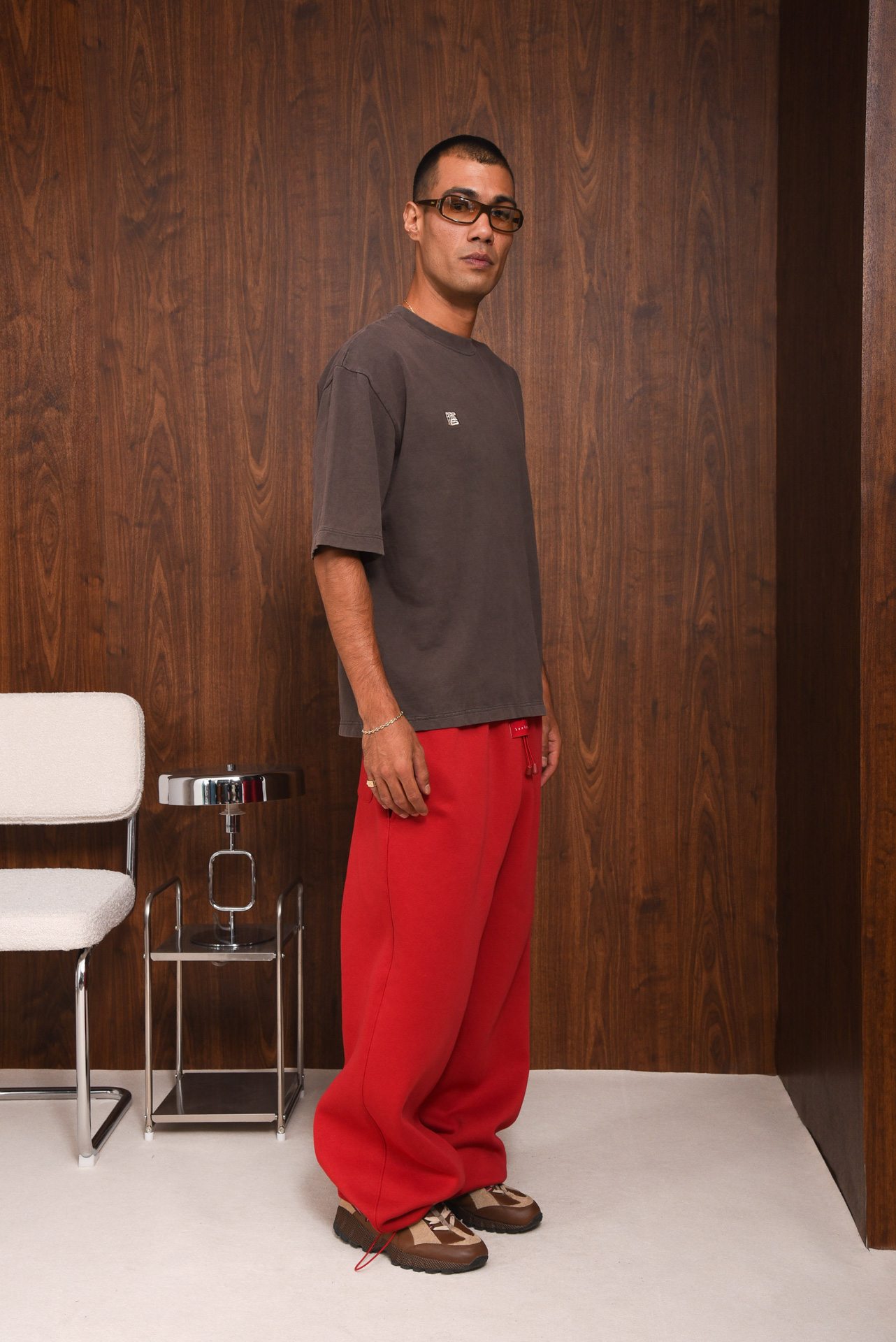 The Selfhood pants have a relaxed, wide-leg shape with an elastic waistband and adjustable drawstring. Made from soft, cotton-blend fabric, they feature two side pockets and one back patch pocket. Designed for everyday wear, they offer comfort, warmth, and an easy fit with a clean, minimal look.