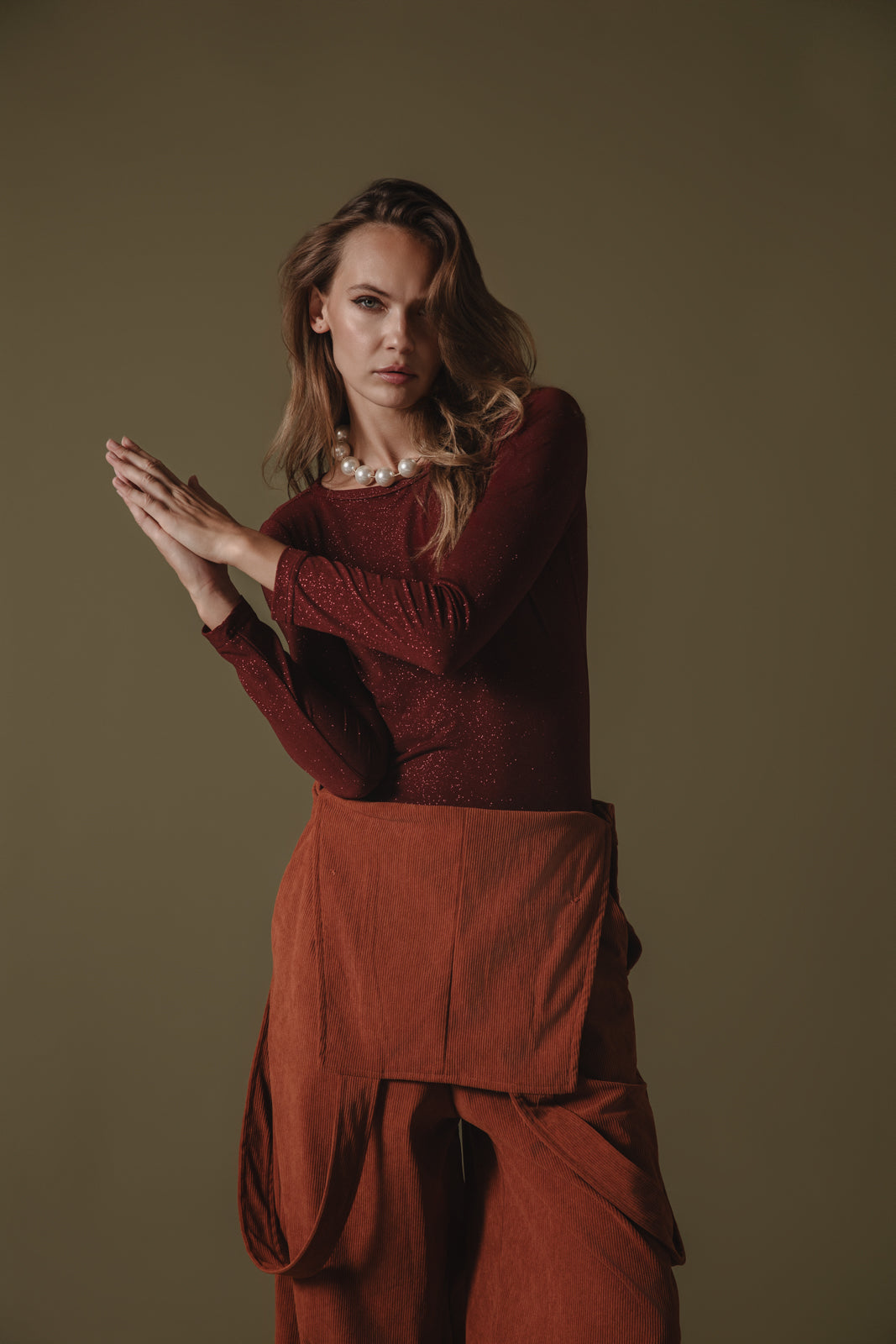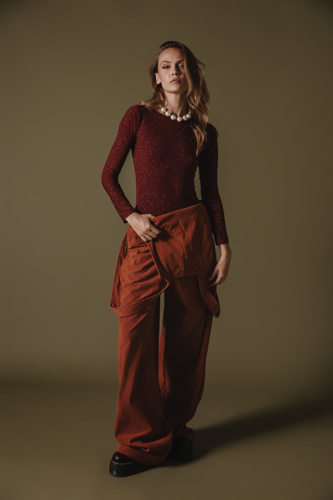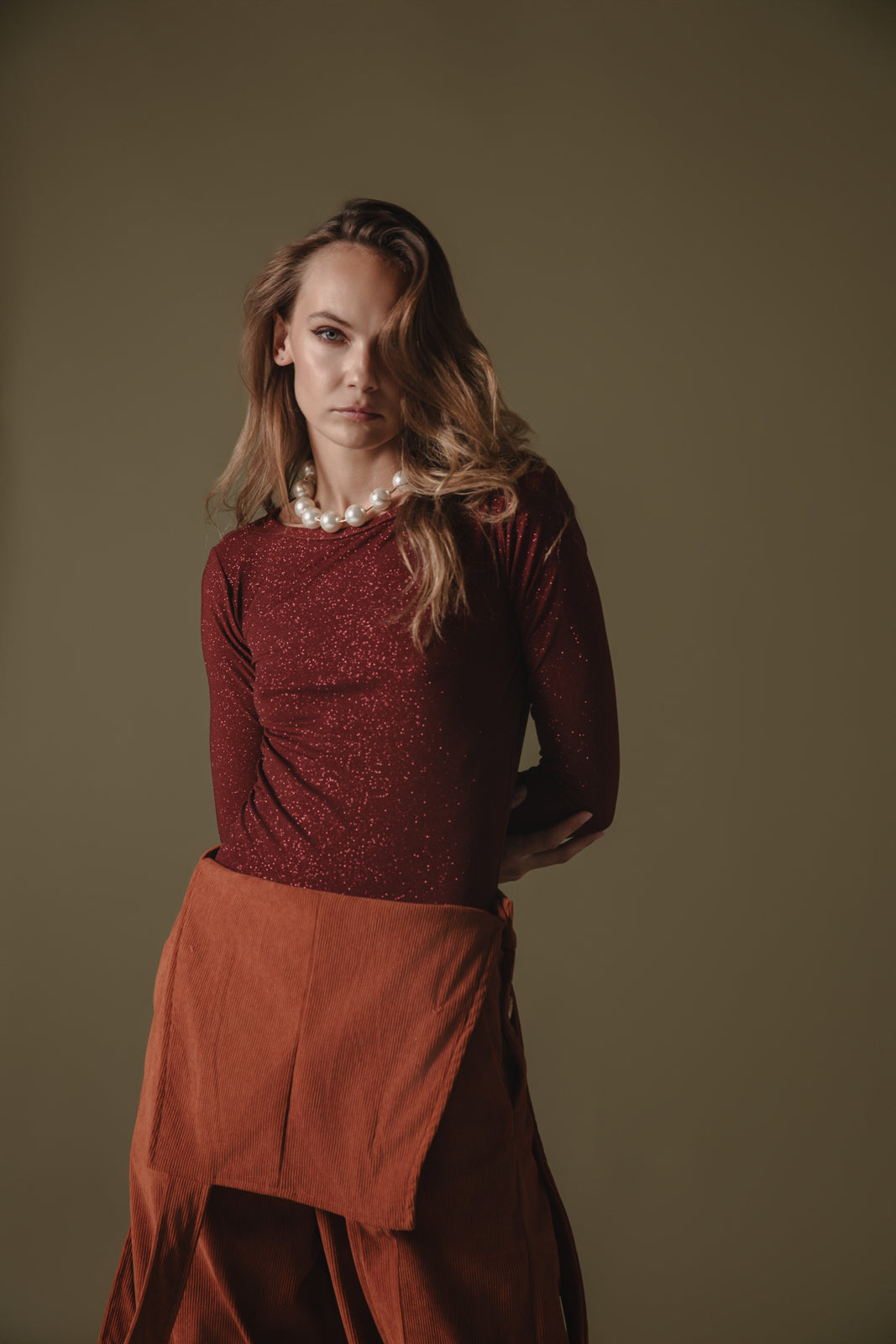 • The Shania Glitter Bodysuit in Bordeaux is a standout, form-fitting piece designed for those who love to shine.