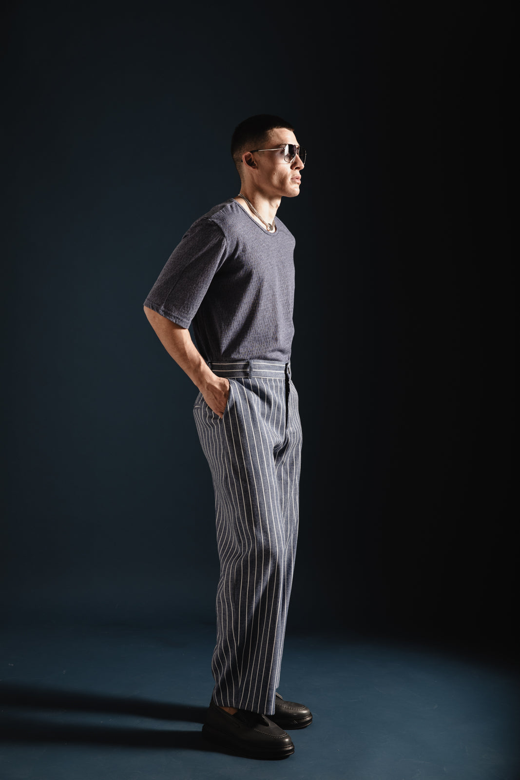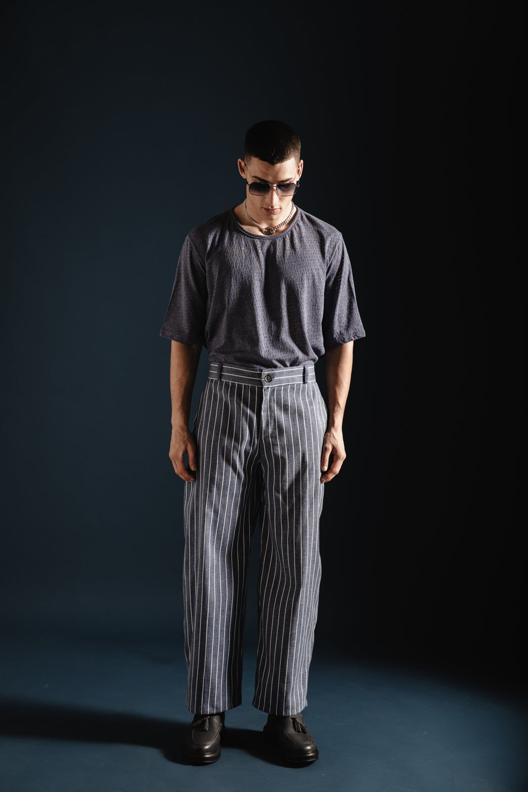 DANTE SIGNATURE STRIPED BLUE BAGGY PANTS