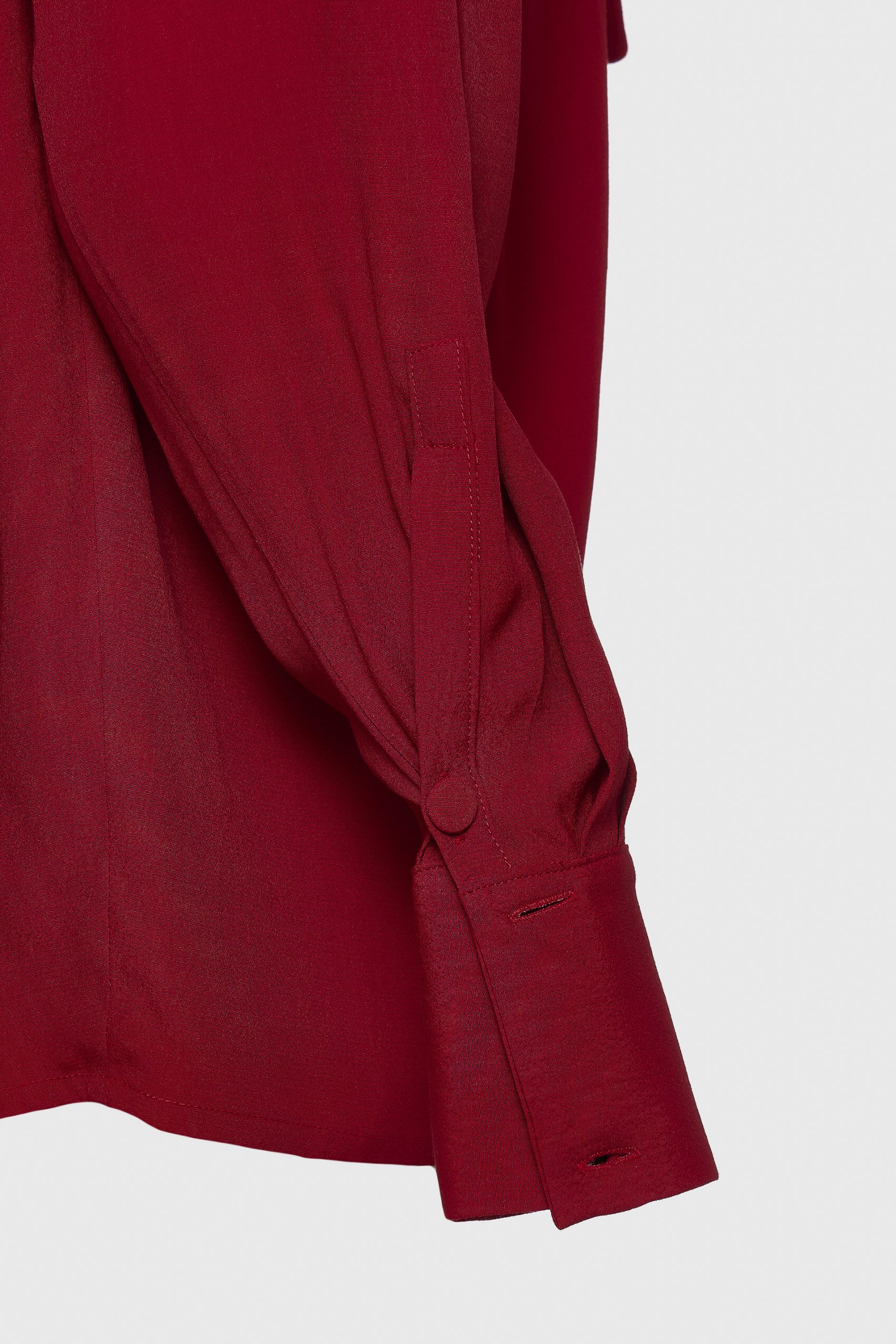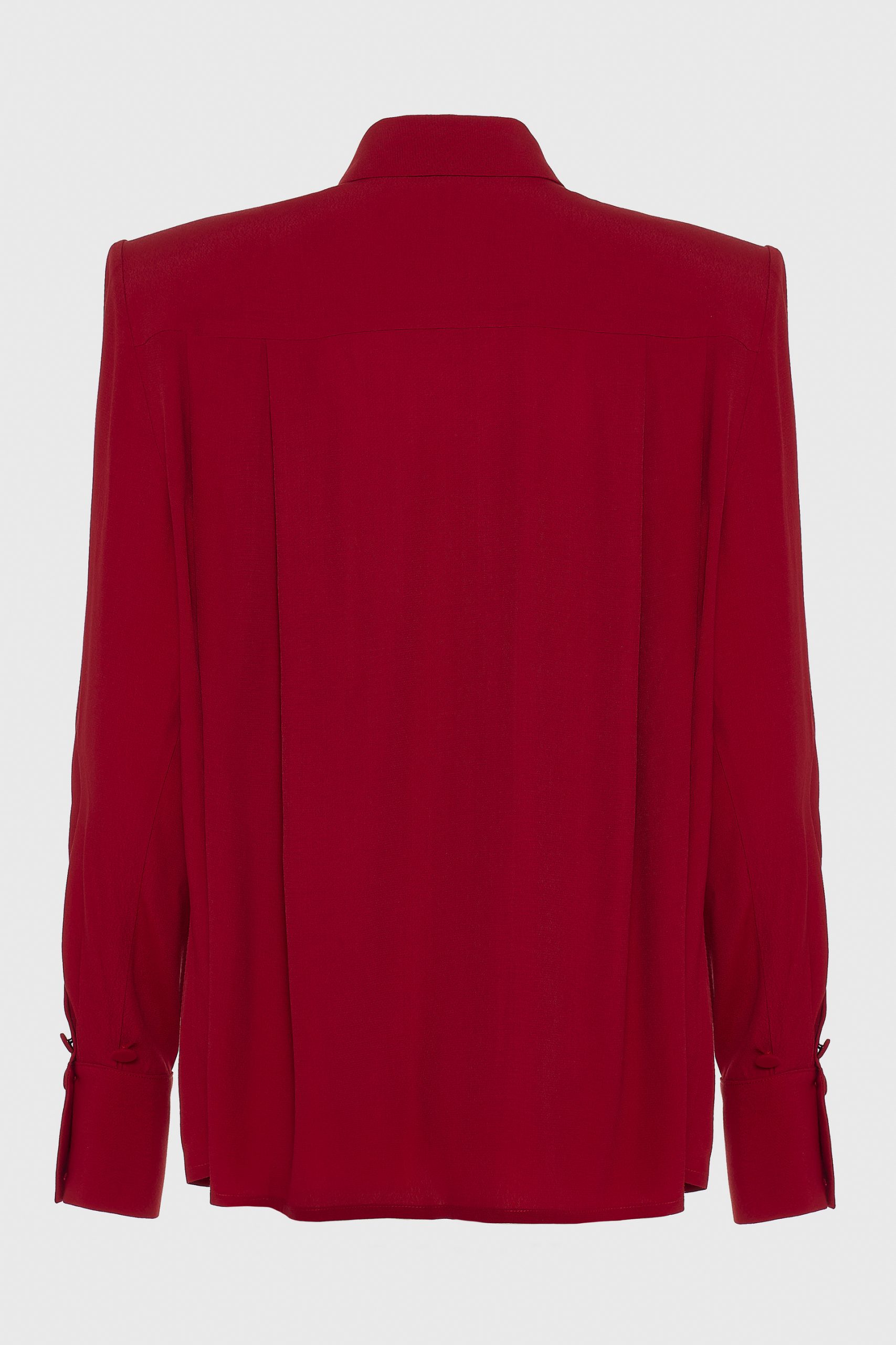 An elegant blouse crafted from a soft rayon-viscose blend, featuring fine pleats and a statement bow tie at the neck. Its fluid drape and lightweight texture make it a refined choice for both day and evening looks effortlessly balancing femininity and sophistication.