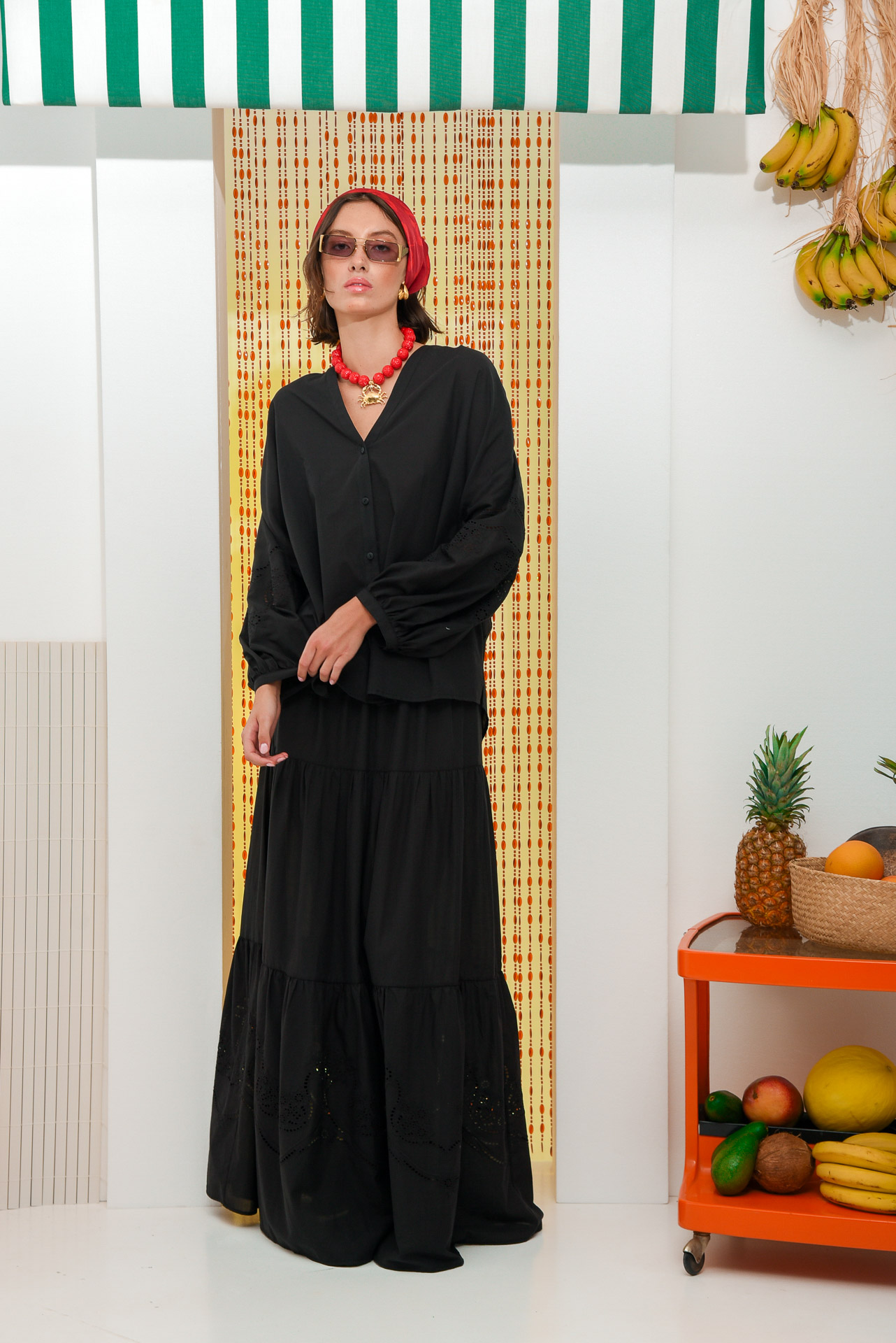 The Soursop skirt is made from lightweight cotton and features a tiered, flowing silhouette for movement and ease. Its hem is finished with detailed broderie anglaise embroidery, adding texture and charm. With an elastic waistband and ankle-grazing length, it’s perfect for warm days and effortless summer styling.