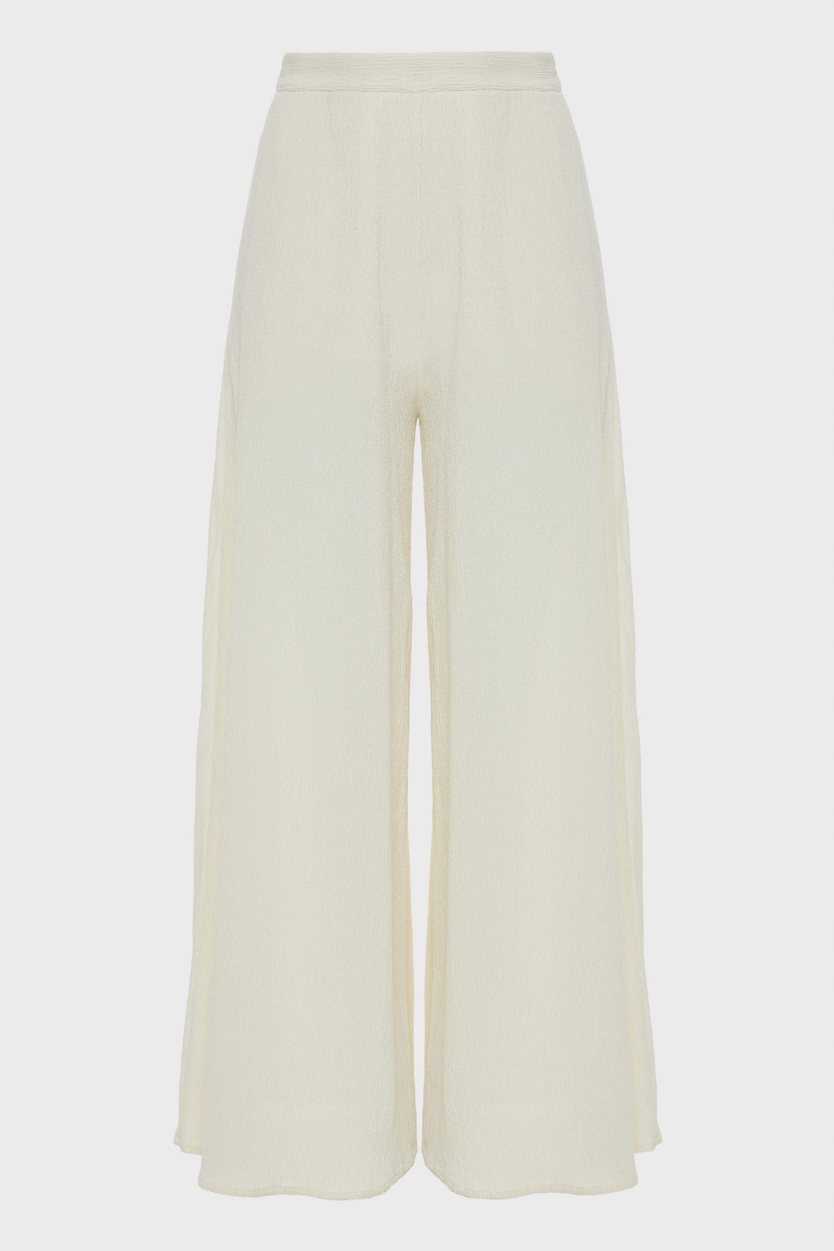 High-waisted wide-leg trousers made from lightweight flowy fabric for an effortlessly elegant look. Designed to elongate the silhouette and move gracefully with every step. Pair with the matching strapless top for a refined coordinated ensemble.