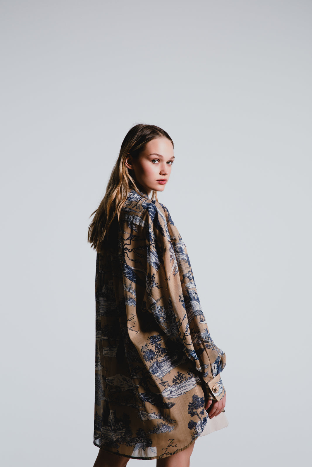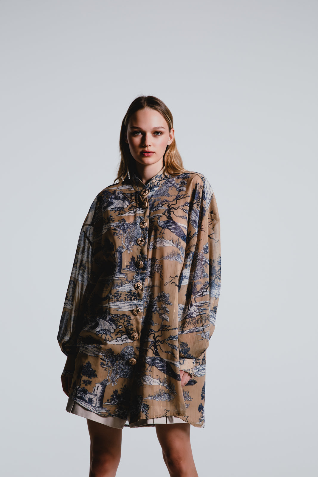 • Κάντε μια δήλωση με το φαρδύ, εμπριμέ πουκάμισό μας, όπου η ευκολία μιας κλασικής σιλουέτας συναντά το δράμα μιας τολμηρής εκτύπωσης τοπίων.