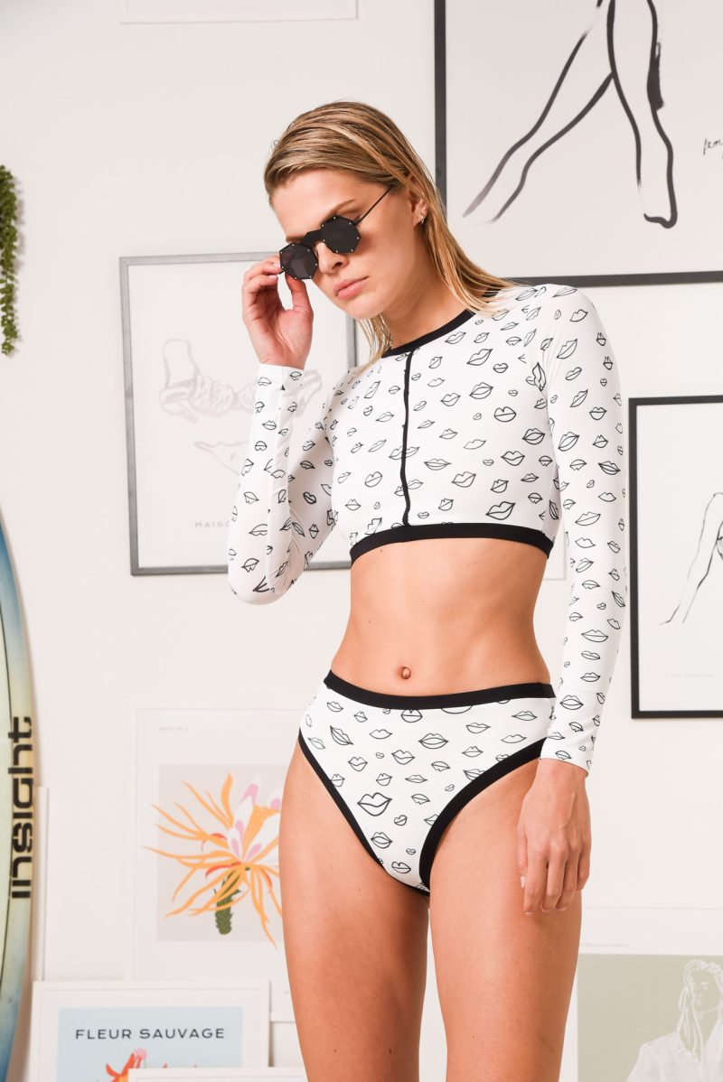 - Make a statement with The Kiss Long-Sleeve Top. This unique rashguard top is adorned with the distinctive The Kiss print and black framing to provide a unique and eye-catching look.
