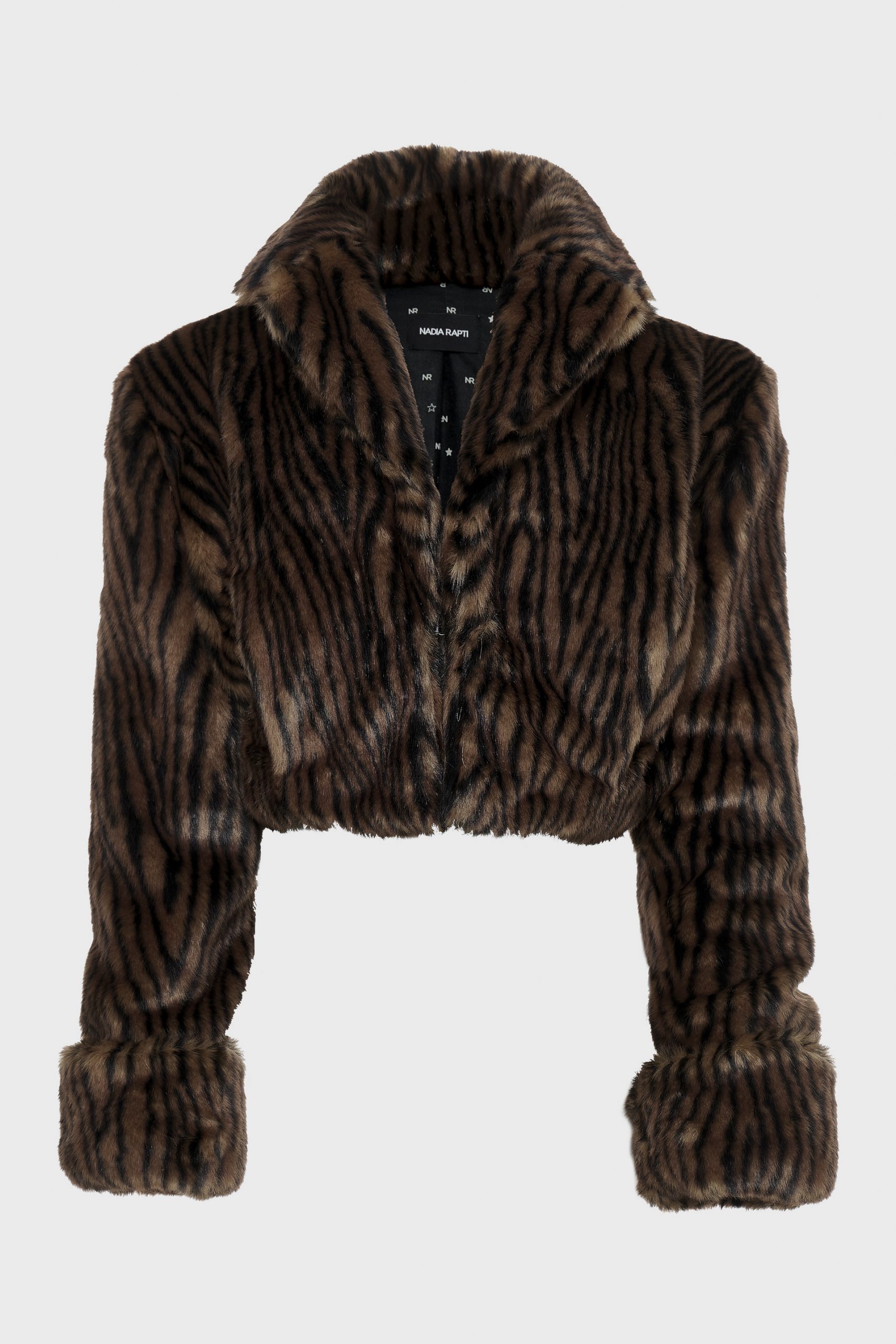THROUBACK FUR CROPPED JACKET BLACK&BROWN