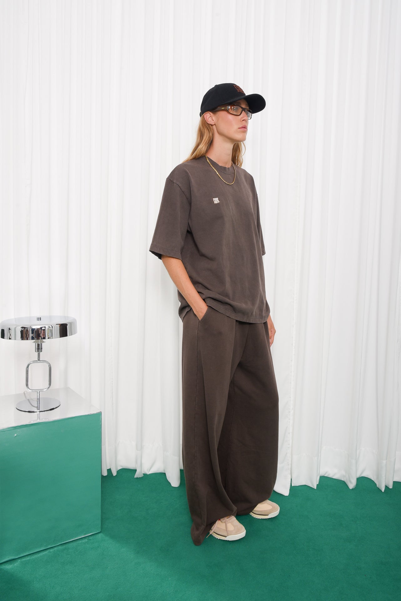The Unique Pants are relaxed, full-length trousers made from soft cotton. They feature an elastic waistband for a comfortable fit, wide legs for an effortless drape, and side pockets for practicality. Finished with a vintage-style garment wash that adds texture and depth to the color. Perfect for elevated comfort every day.