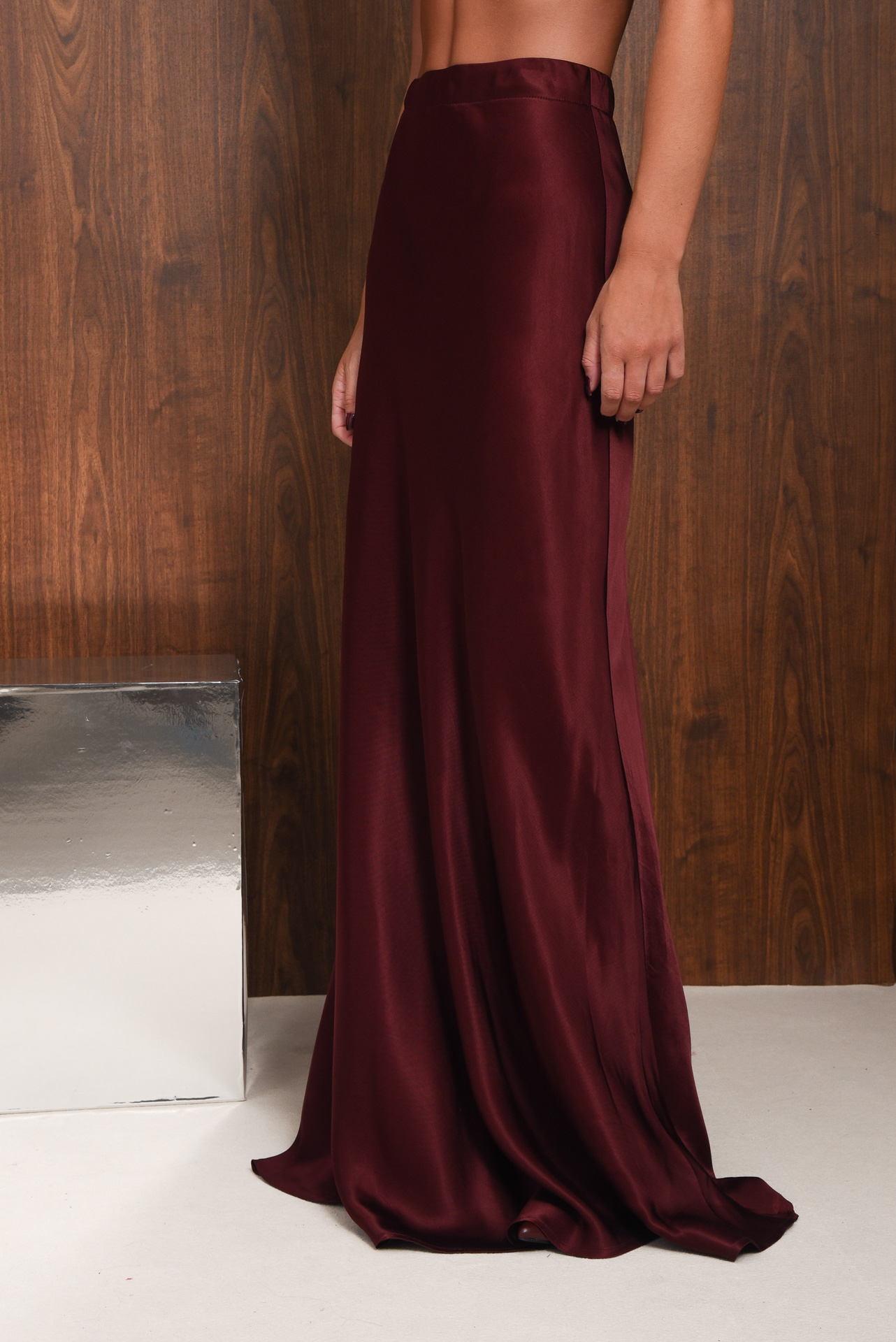The Vanity maxi skirt is made from soft viscose with a silky finish. It has a high waist, smooth waistband, and a long, flowing cut that reaches the floor. Designed with clean lines and subtle seams, it drapes elegantly and moves with ease.