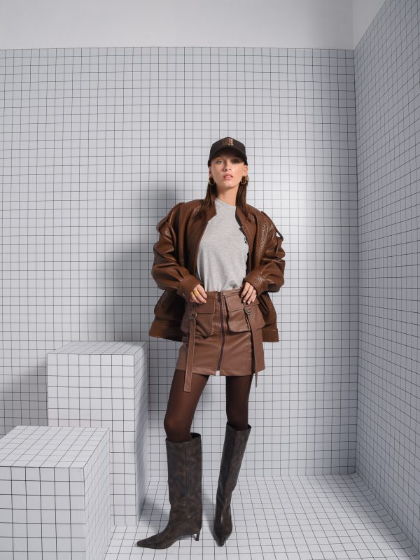 ARPYES MOMENTUM BROWN MINI SKIRT