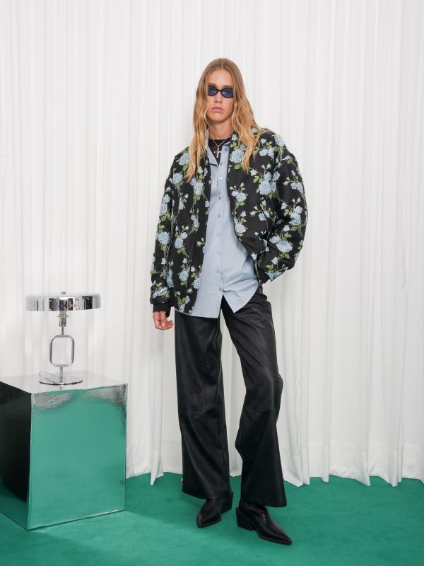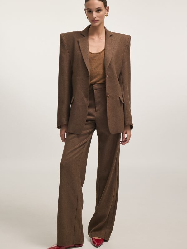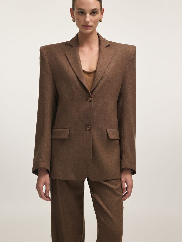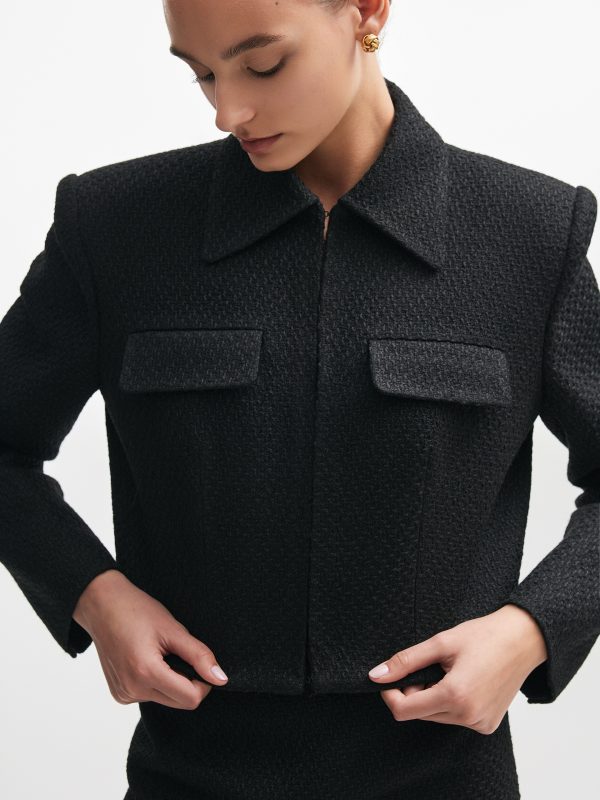 BROWN PANAMA WEAVE FAUX LEATHER JACKET
