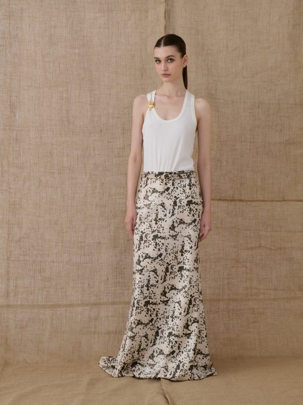 VASSIA KOSTARA Satin Long Skirt with Animal Print