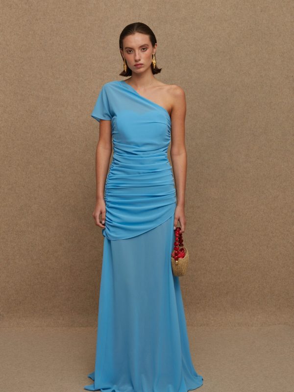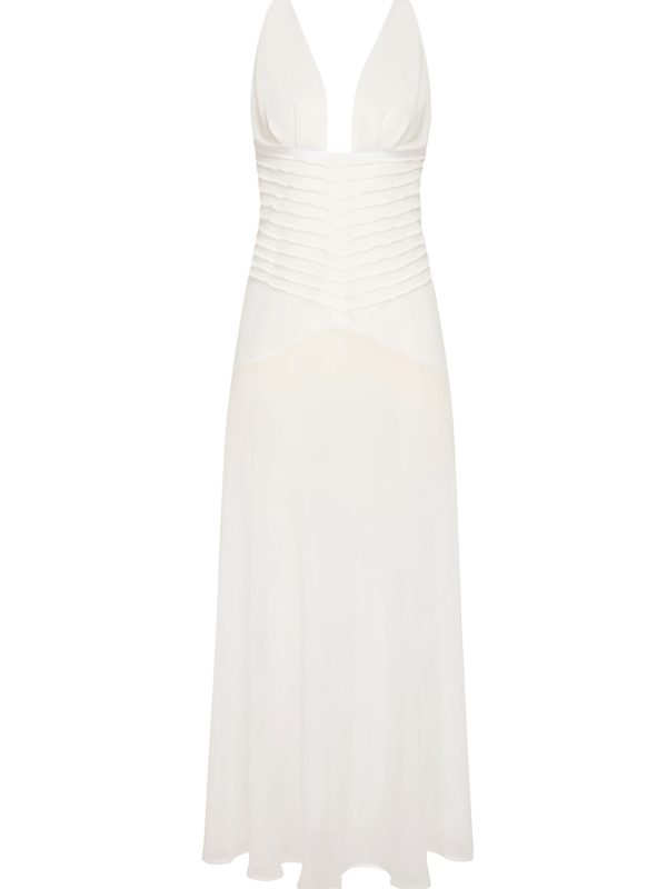 VASSIA KOSTARA KHAKI CROCHETED MAXI DRESS